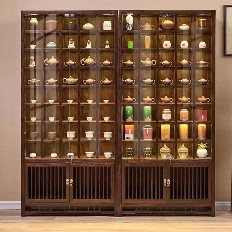 老榆木实木玻璃展示柜置物架红酒储藏柜白酒展示架茶室茶叶陈列柜