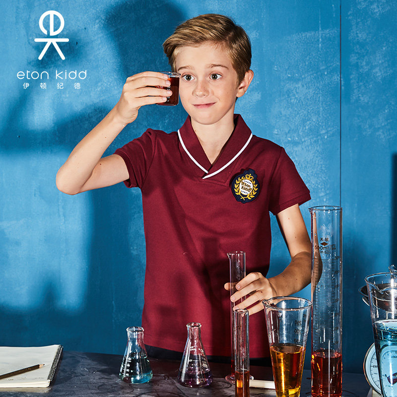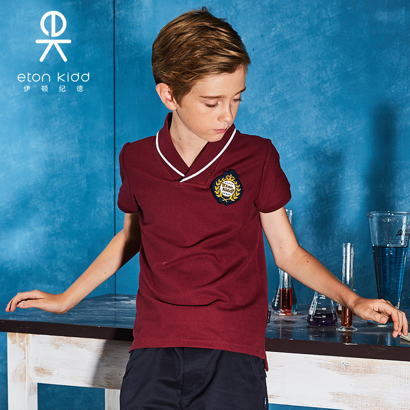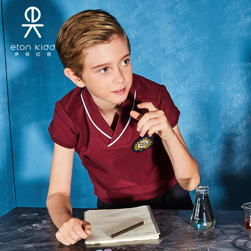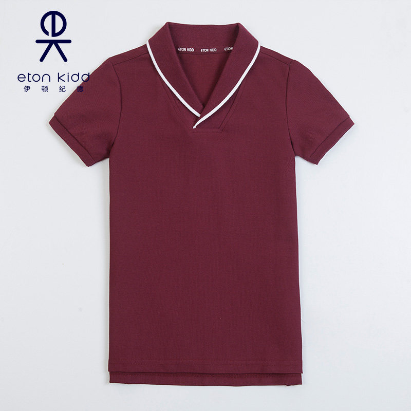 伊顿纪德校服 儿童装学院枣红色青果领男童女童短袖T恤13T006