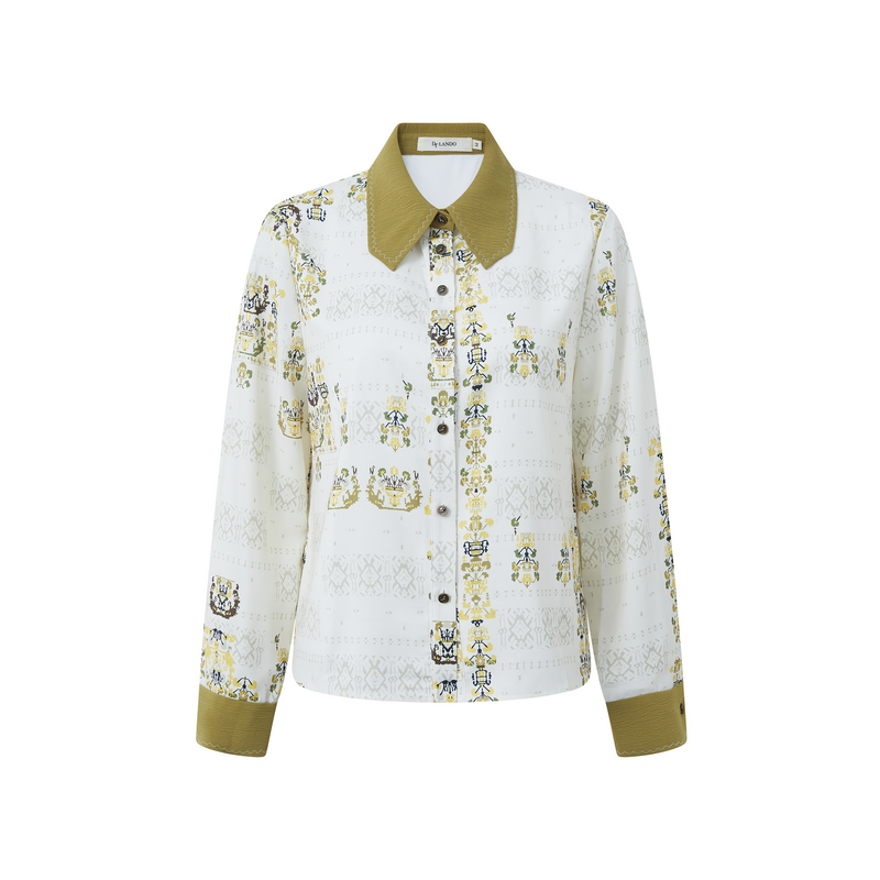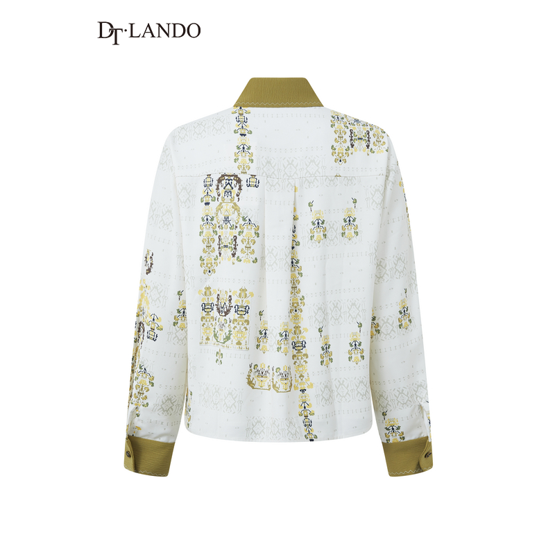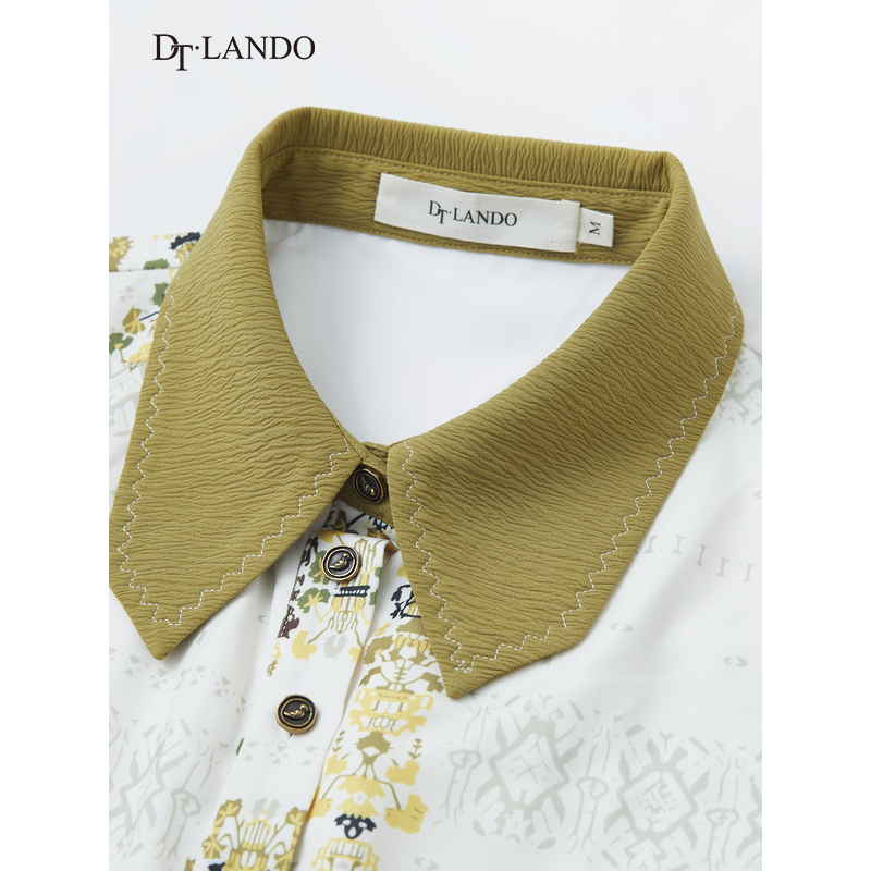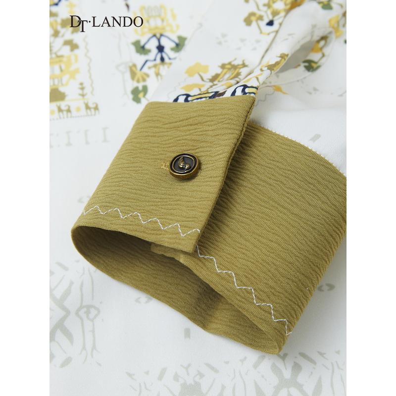 DTLANDO秋季女衬衫复古拼接领撞色设计长袖翻领雪纺衫上衣