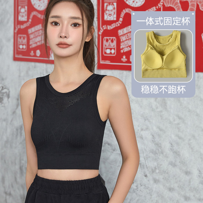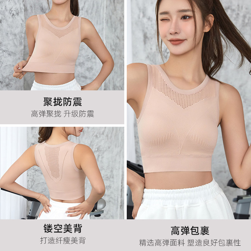 美背心式运动内衣女跑步防震防下垂外穿健身瑜伽服固定杯训练上衣