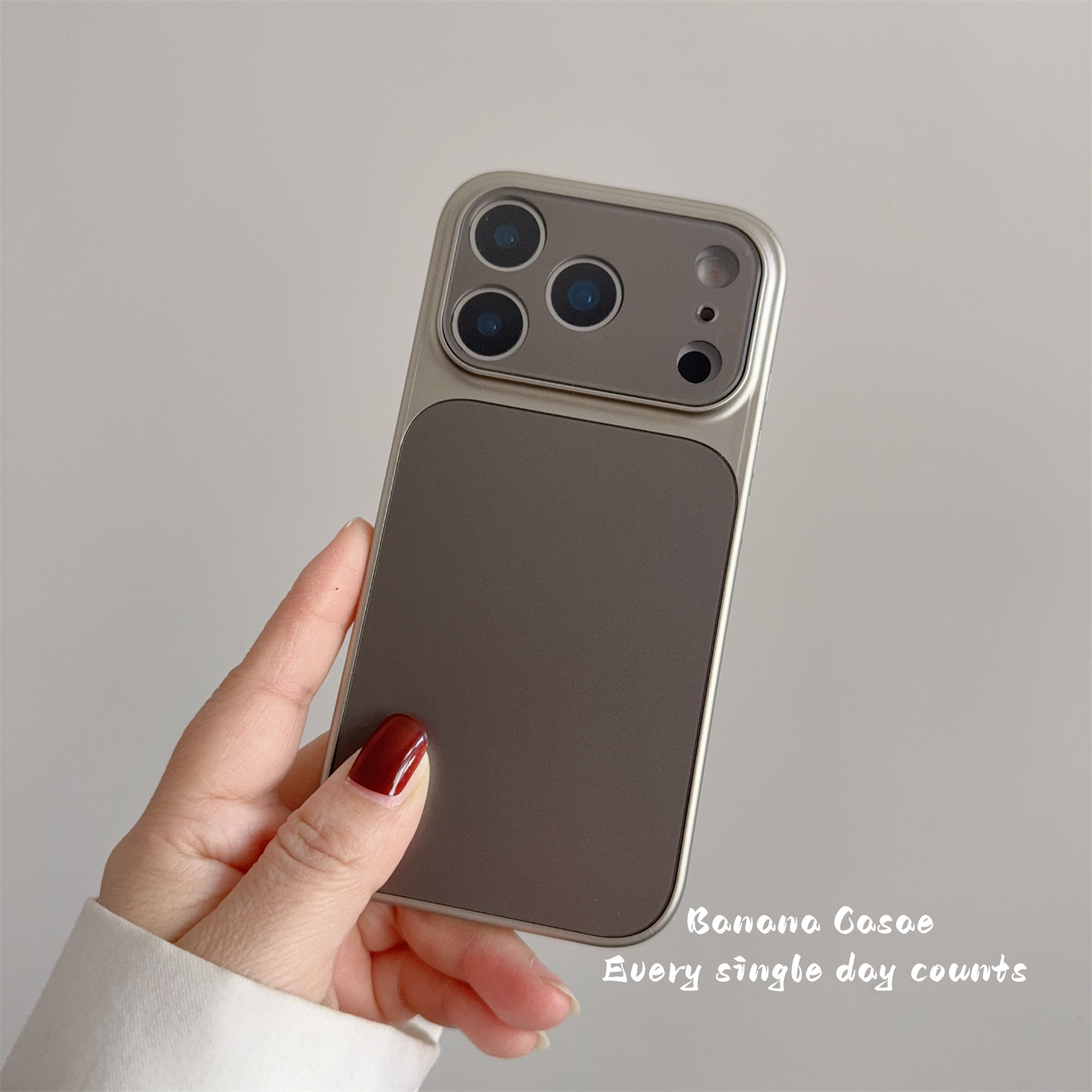 高级感复古铜色自带镜头膜手机壳