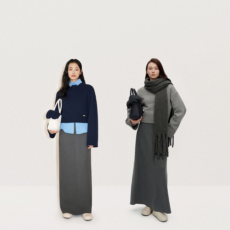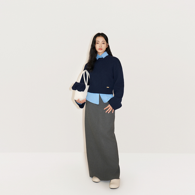 OCHIRLY欧时力 100%羊毛套头毛衣女上衣保暖松弛感2024秋冬新品