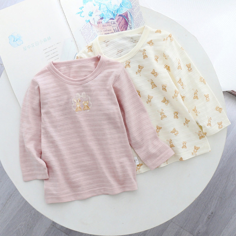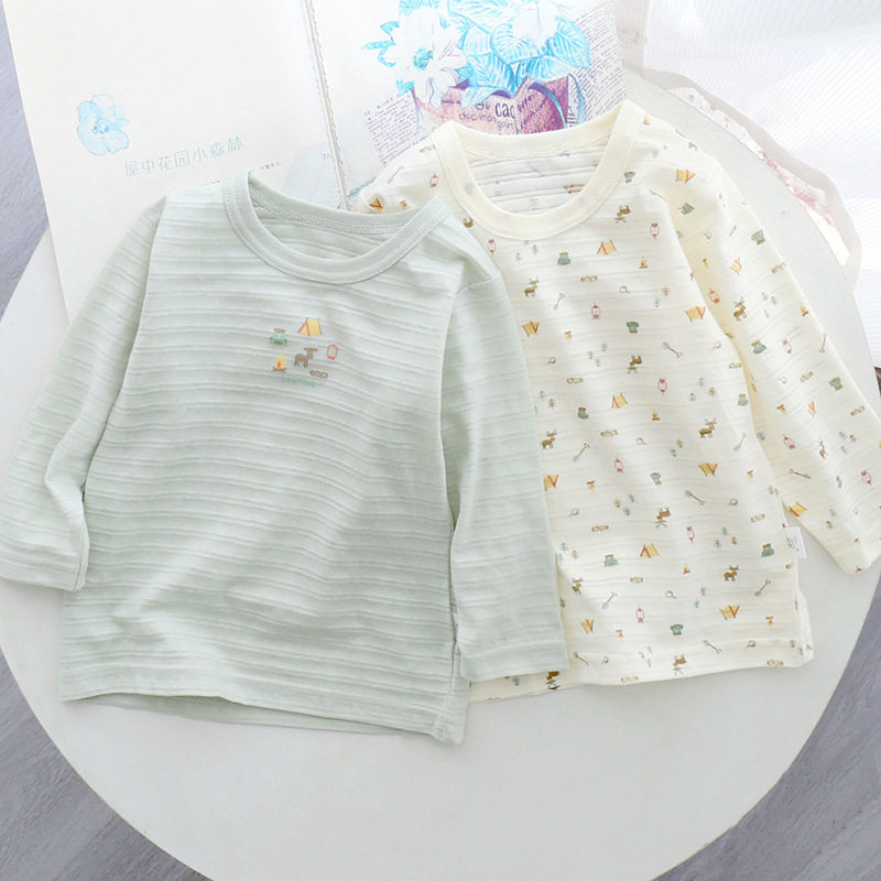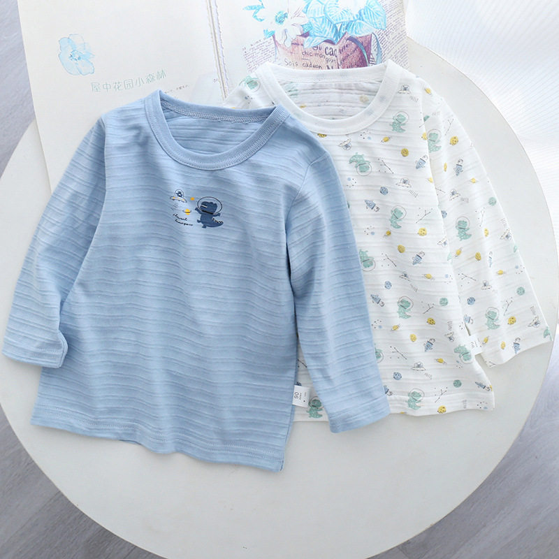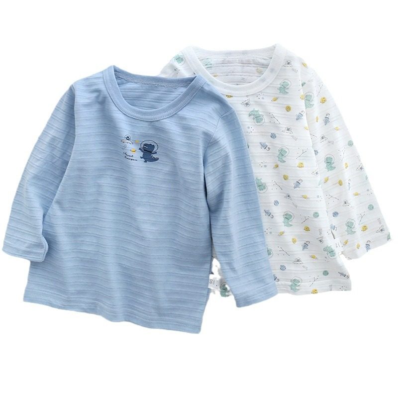A类两件装夏季薄款儿童长袖上衣 纯棉竹节棉男女童宝宝家居空调服