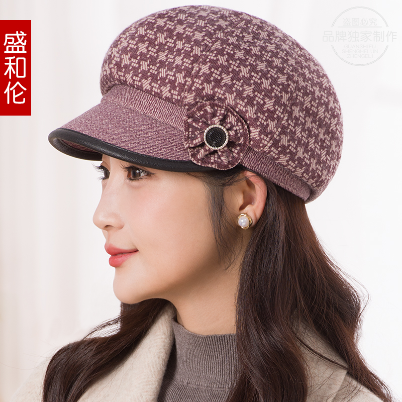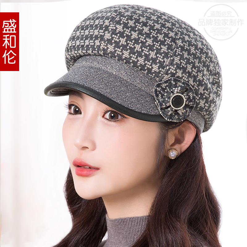 盛和伦贝雷帽子鸭舌帽秋冬季厚款八角帽女款毛呢显脸小加棉保暖帽