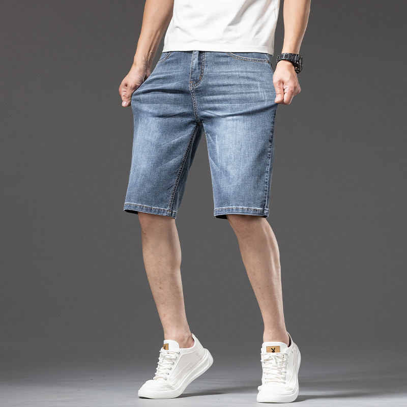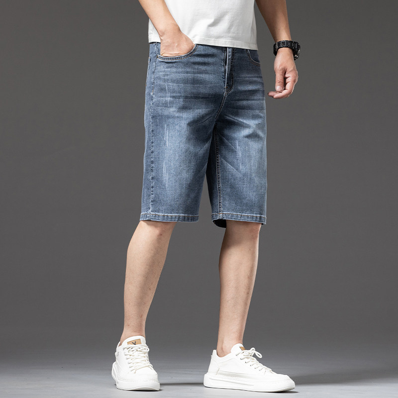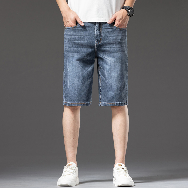 冰丝超薄牛仔短裤男士夏季薄款宽松大码五分裤子中年爸爸商务中裤