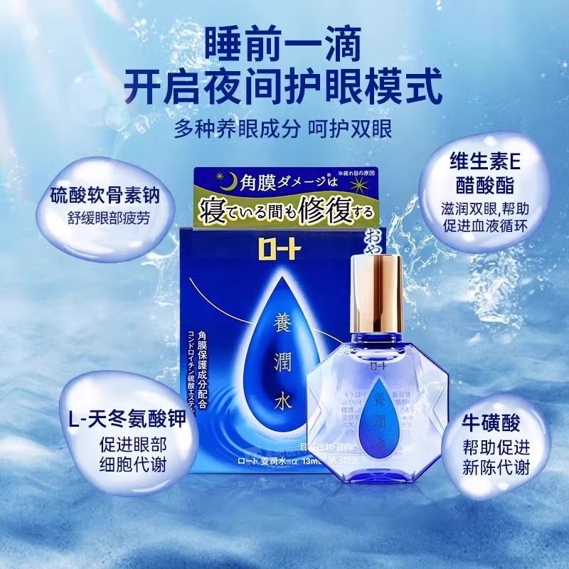 日本ROHTO乐敦养润水眼药水13ml夜间睡眠角膜修复滋润眼部滴眼液