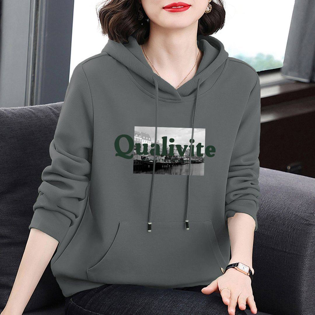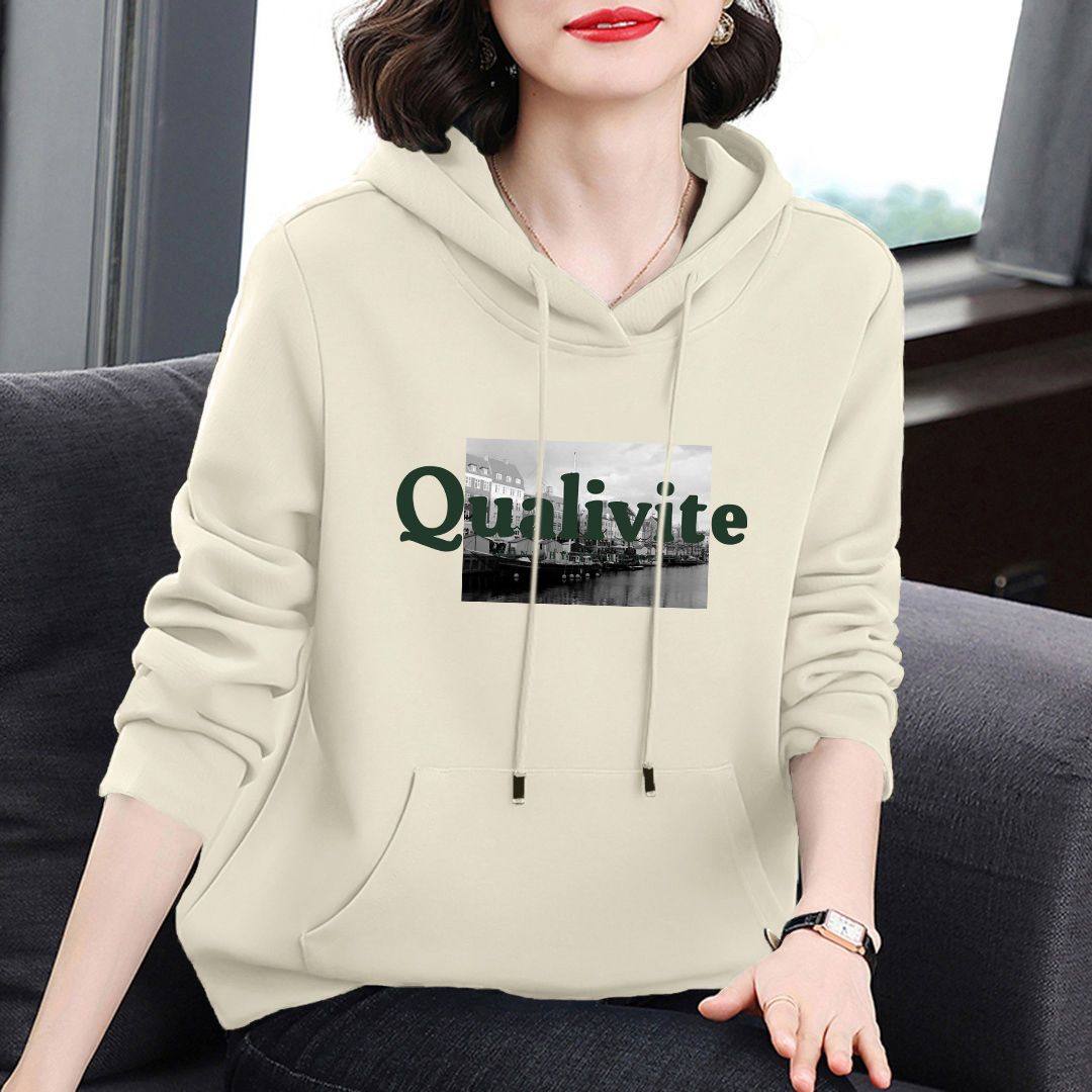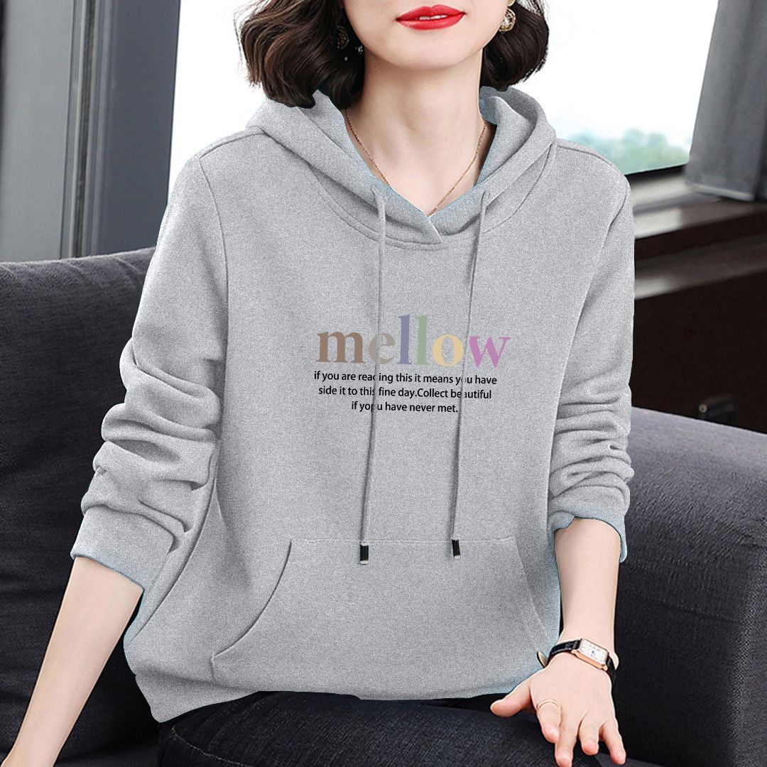 连帽卫衣女秋季新薄款韩版纯棉宽松百搭大码长袖简约上衣显瘦女士