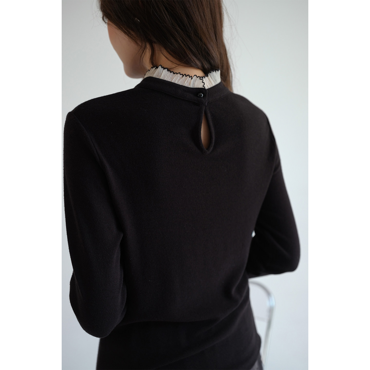 蓝若水韩系小众显瘦蕾丝拼接上衣