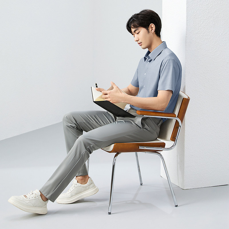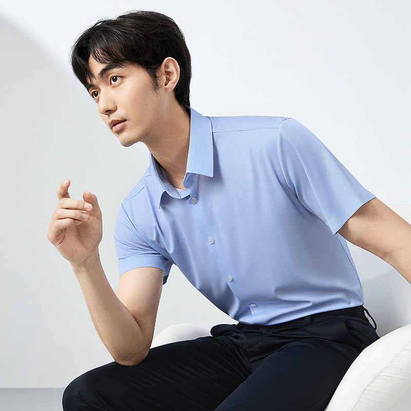 【凉感】柒牌格纹短袖衬衫男2025夏季新款休闲百搭无缝工艺衬衣