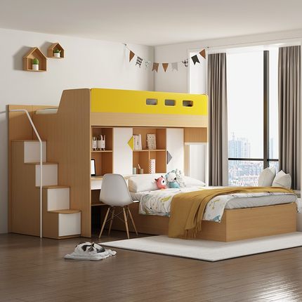 母子儿童床上下床 组合床多功能榻榻米高低床省空间双层床交错式