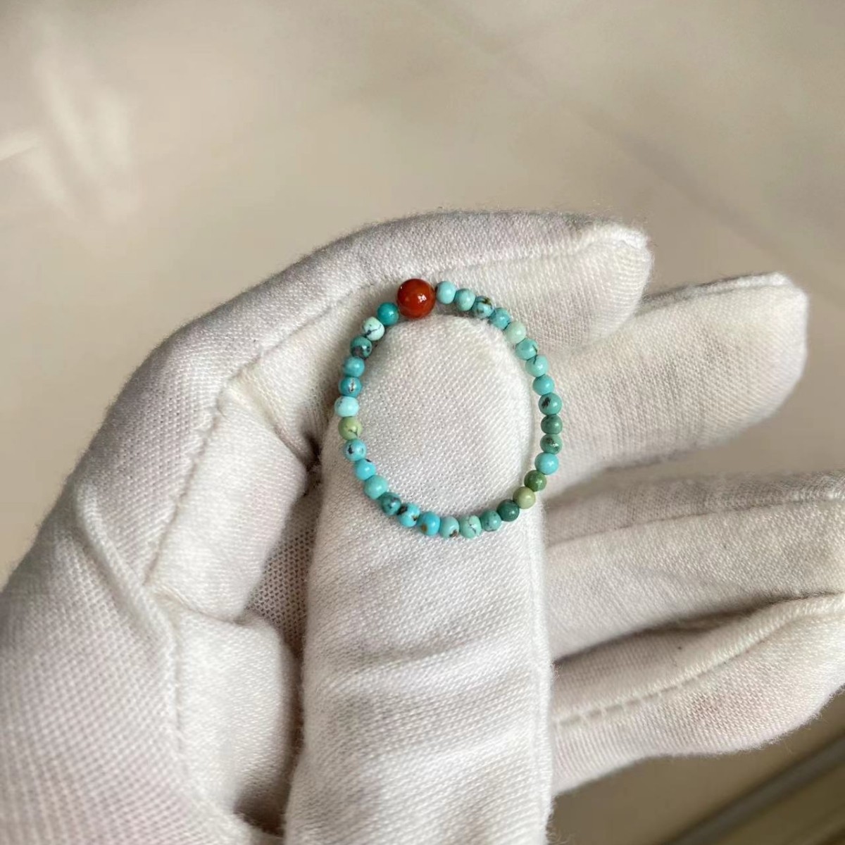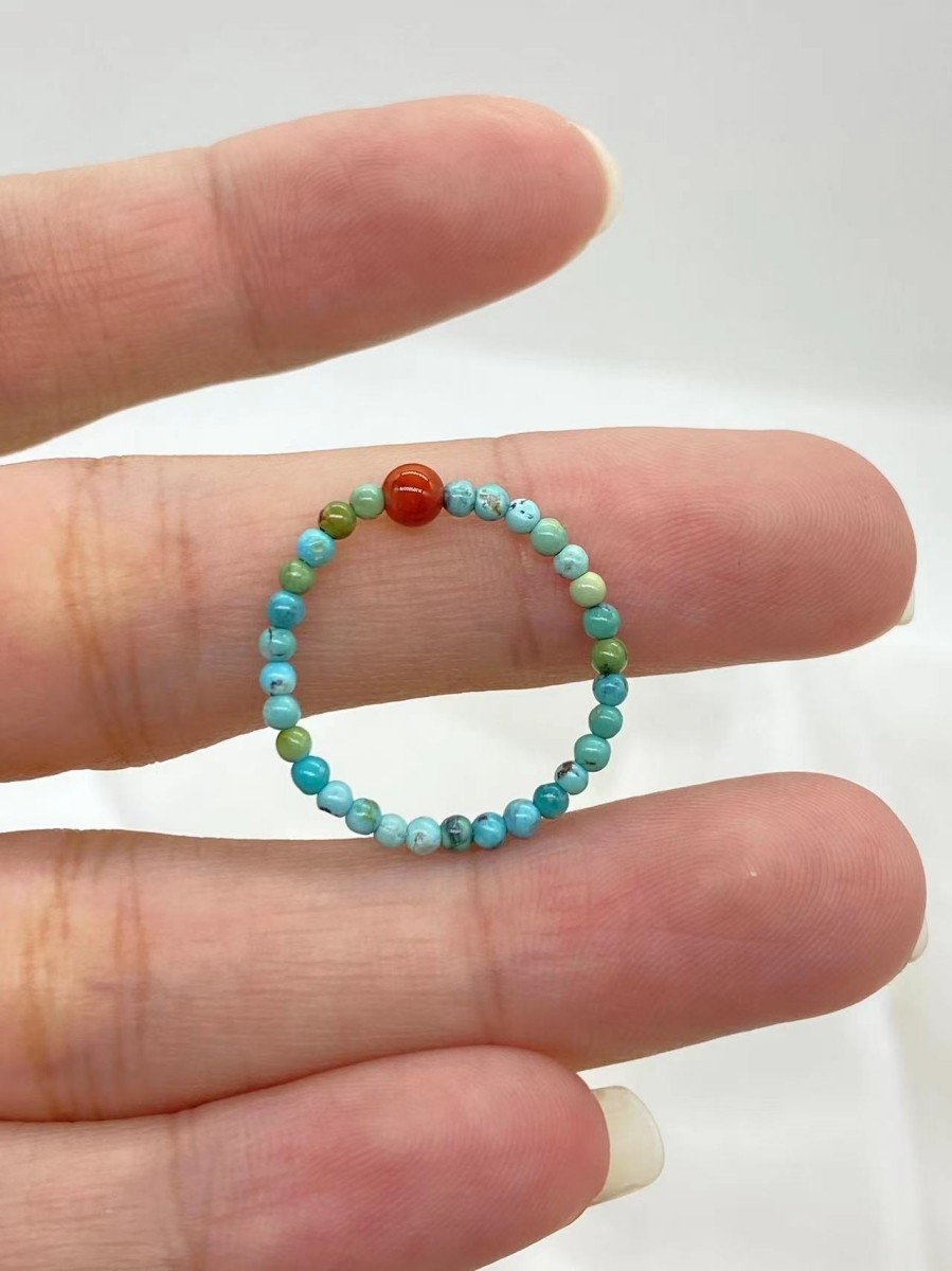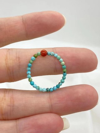天然原矿绿松石戒指文玩串珠指环南红转运珠小众个性尾戒玉石素圈