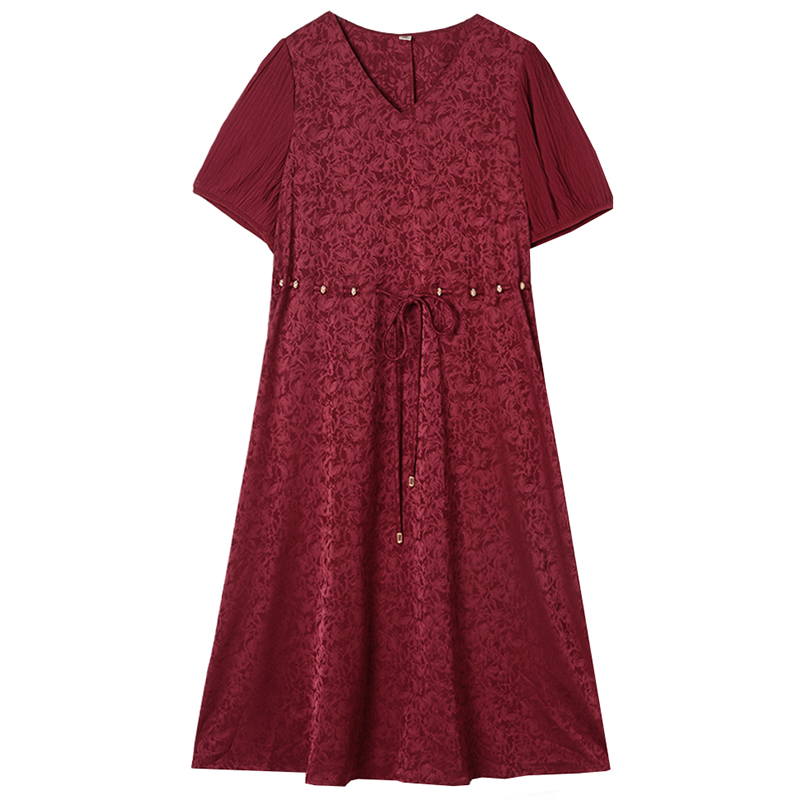 2025年夏装Outlets专柜 高端WZ系列暗纹提花中长裙套头短袖连衣裙