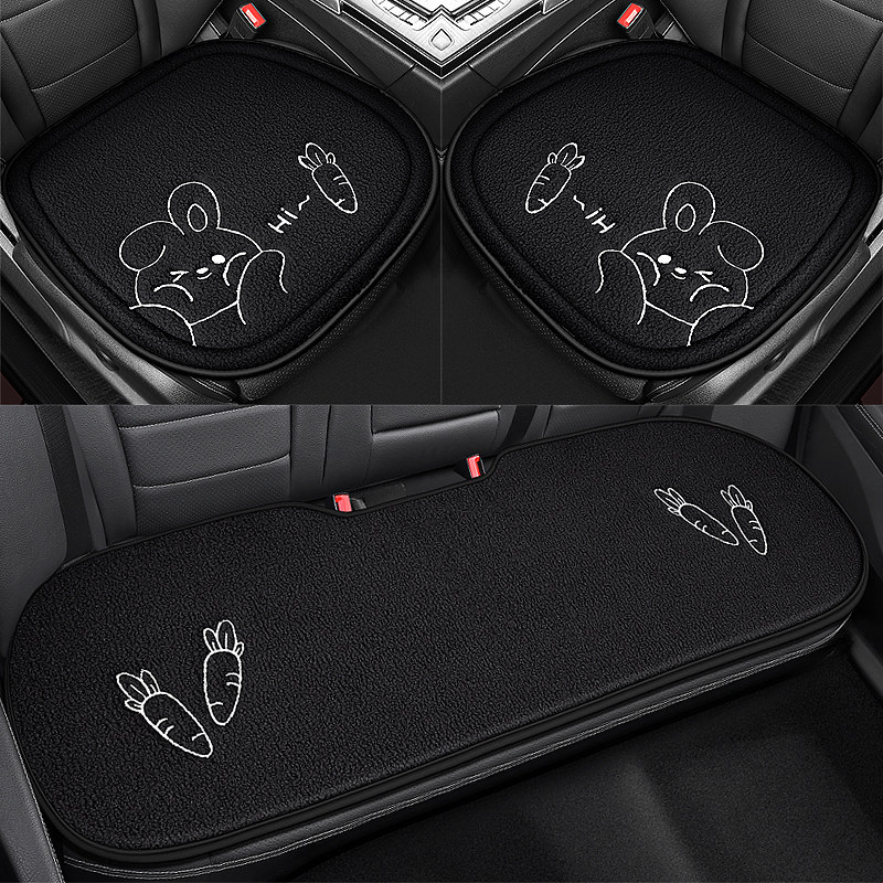 汽车坐垫单片冬季毛绒卡通可爱无靠背三件套四季通用后排座垫座套
