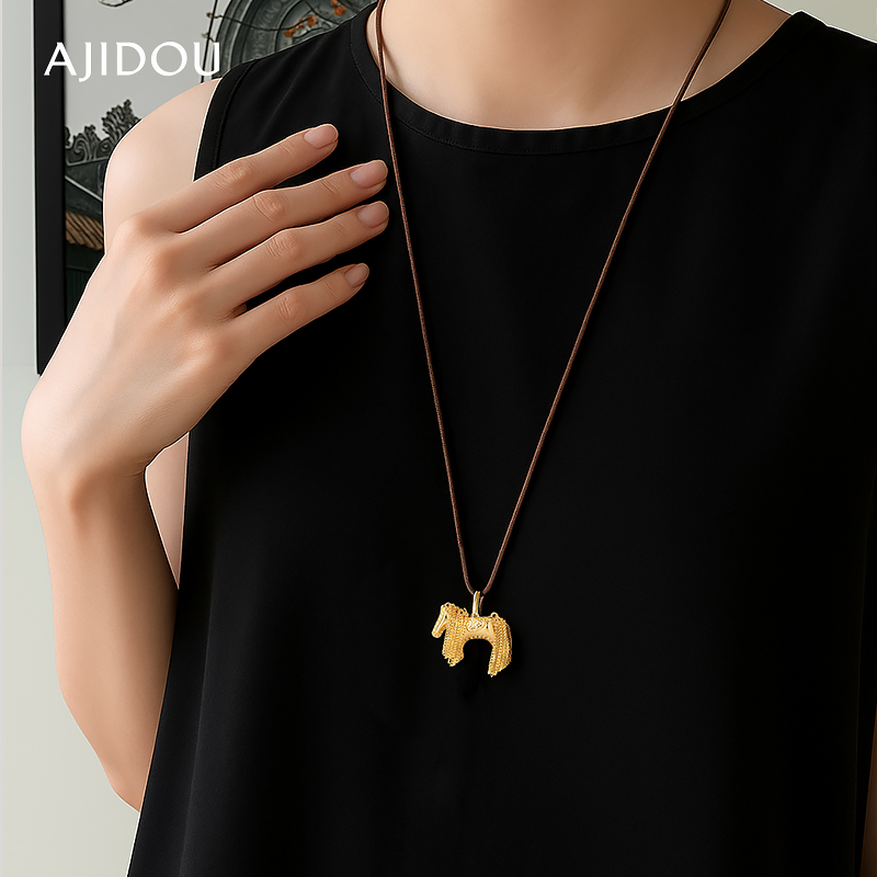AJIDOU阿吉豆项链女款流苏生肖马上有钱精致吊坠毛衣链配饰锁骨链