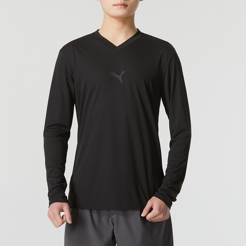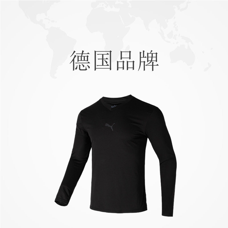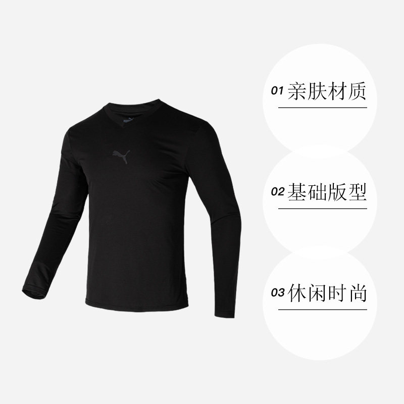 【自营】Puma彪马T恤男装休闲时尚V领运动服健身训练快干长袖上衣