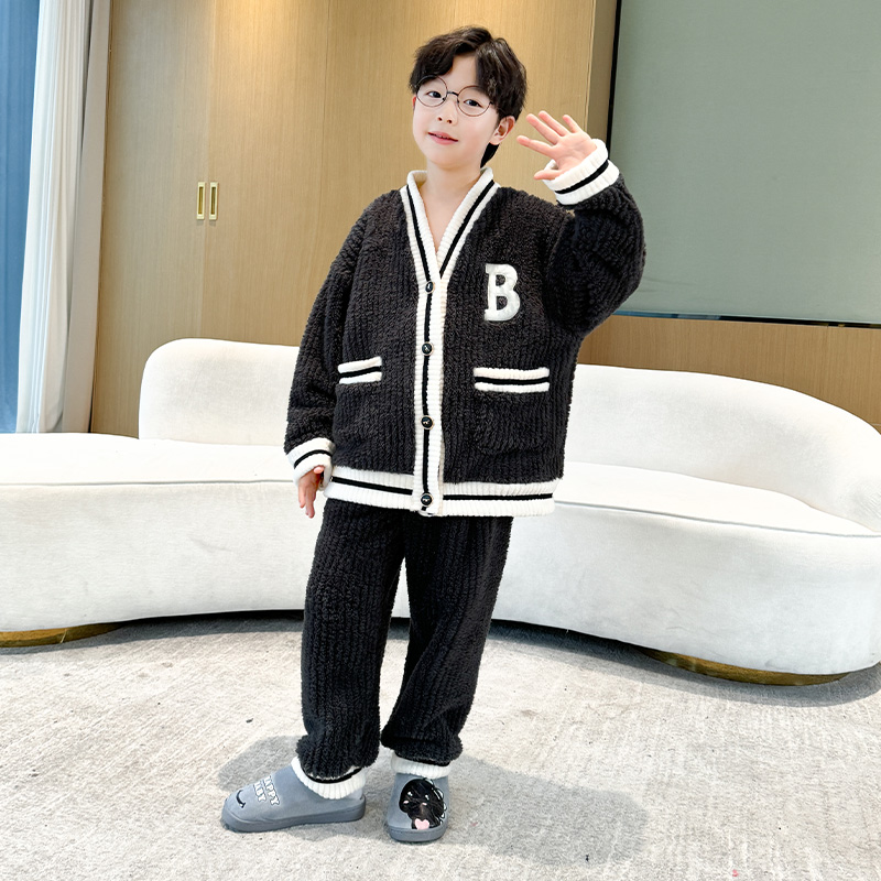 儿童装男童睡衣秋冬款冬季珊瑚绒法兰绒中大童家居服加绒加厚男孩