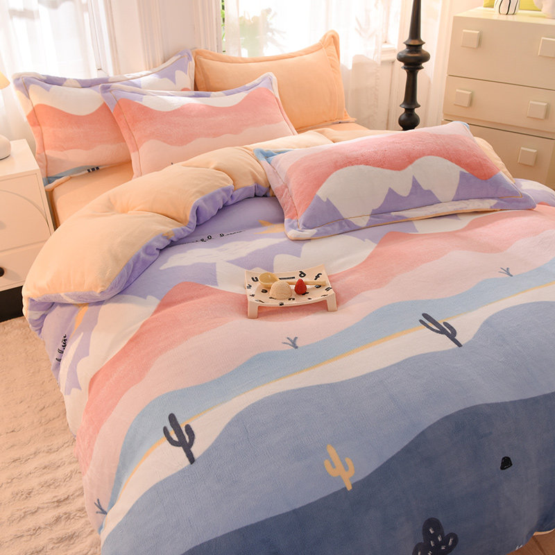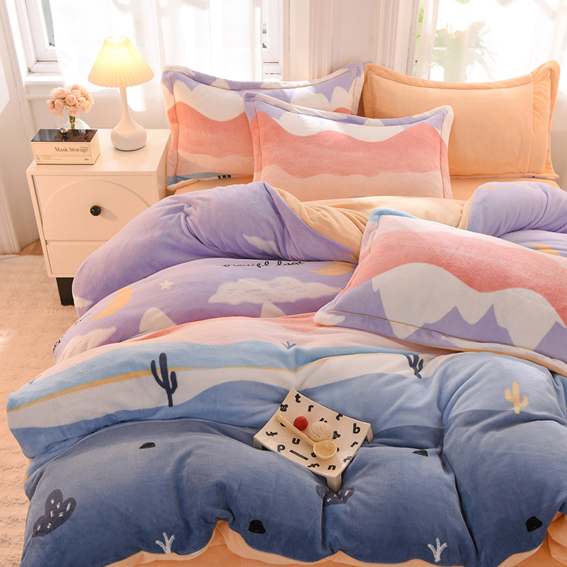 加厚牛奶绒四件套冬季珊瑚绒双面绒2025新款法兰绒被套床笠款床上