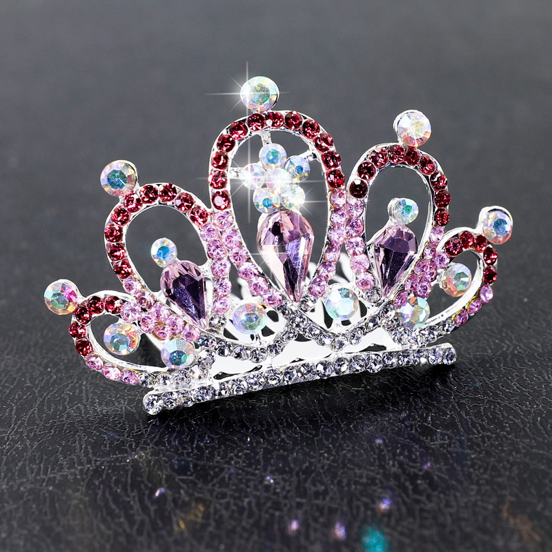 儿童皇冠头饰公主女童水晶发夹王冠小孩发卡宝宝生日演出发箍发饰