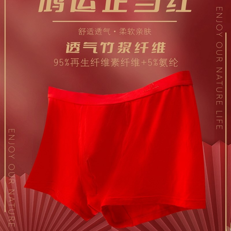 华之歌红色内裤男本命年竹纤维平角男士结婚无痕四角裤属龙年短裤