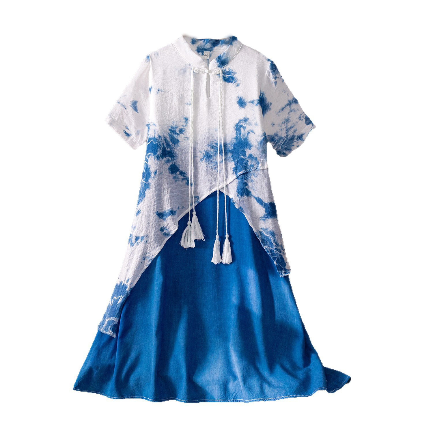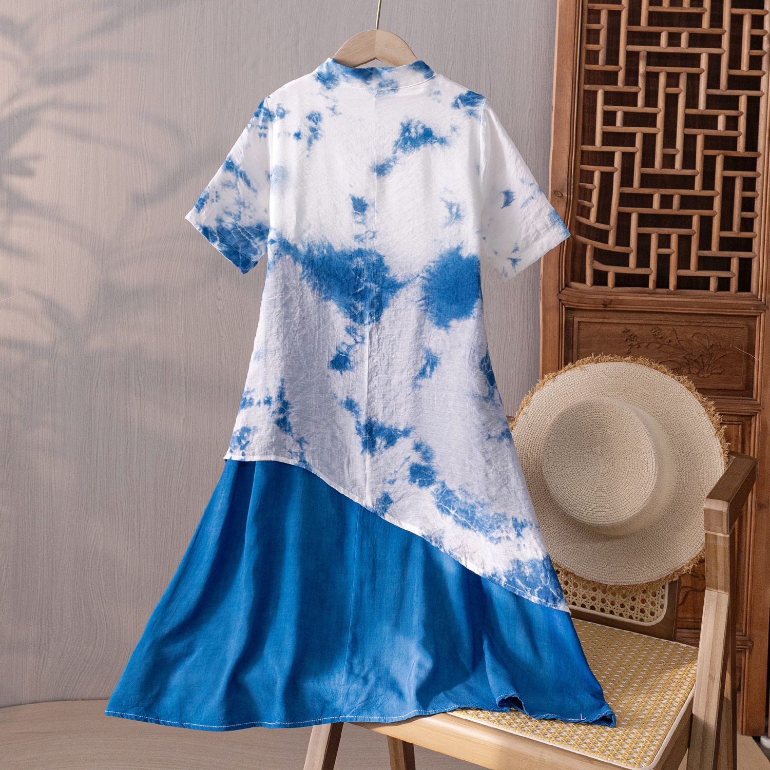 云南古法手工扎染新中式国风复古盘扣气质母女亲子装蓝染连衣裙子