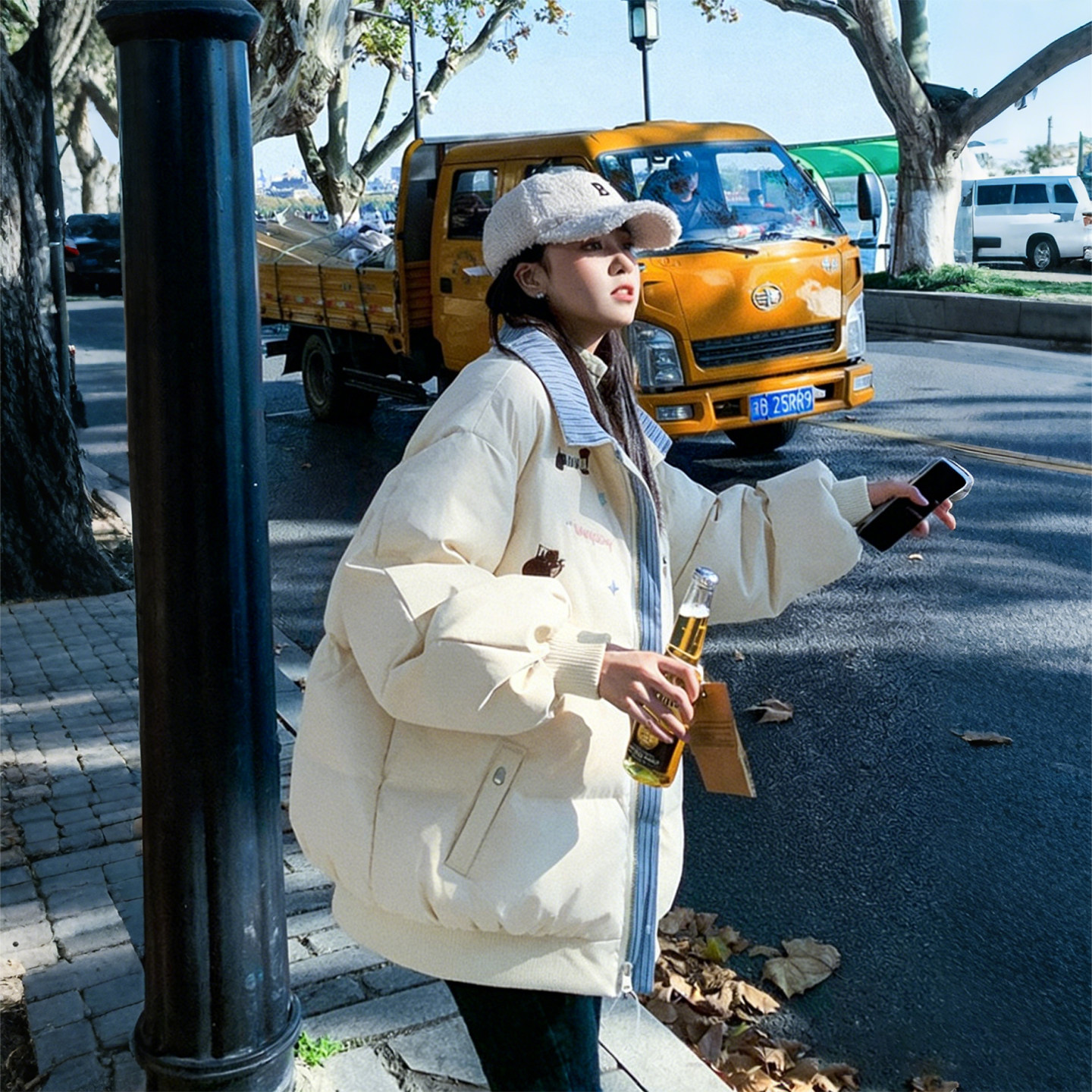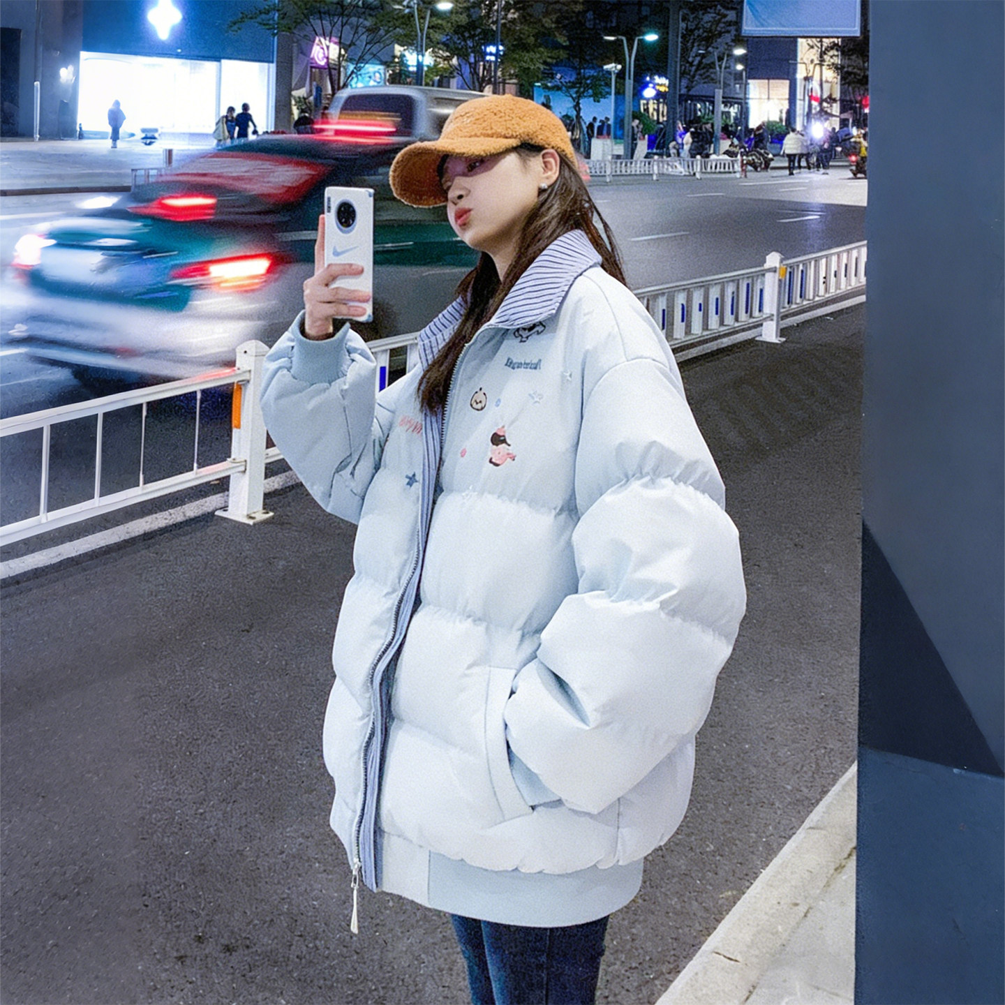 300斤胖mm大码女装宽松设计感棉服女冬季加厚保暖撞色棉袄外套潮