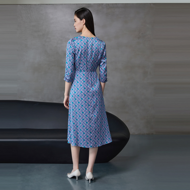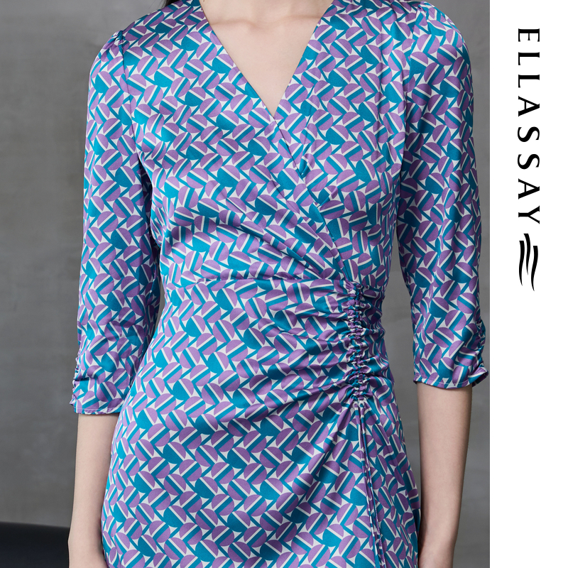 歌力思奥莱2025春夏新款桑蚕丝V领收腰连衣裙女EWD365Y239DX