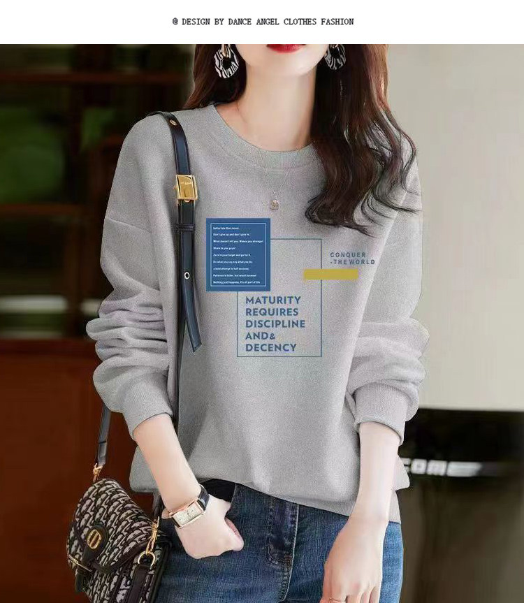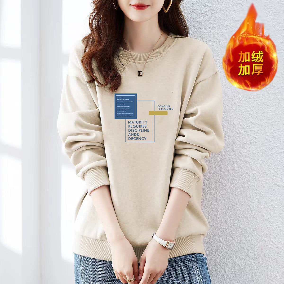 纯棉圆领卫衣女薄款韩版设计感印花百搭套头长袖体恤加绒加厚上衣