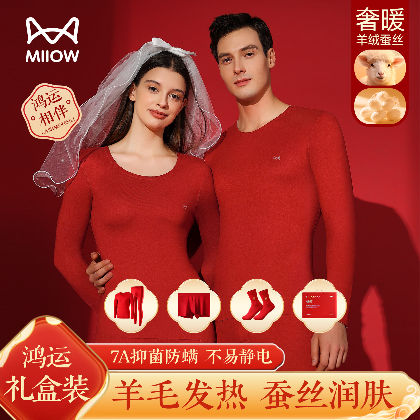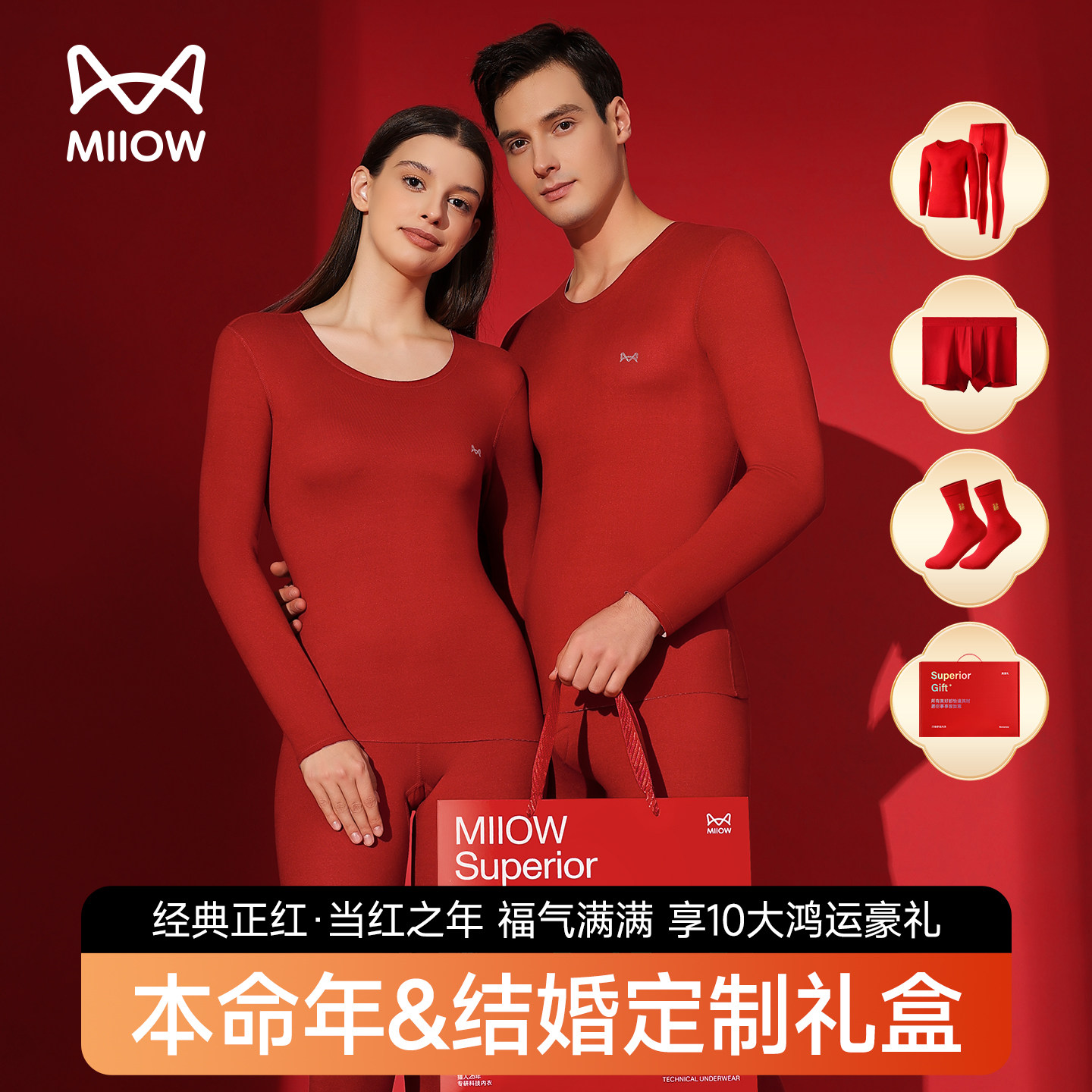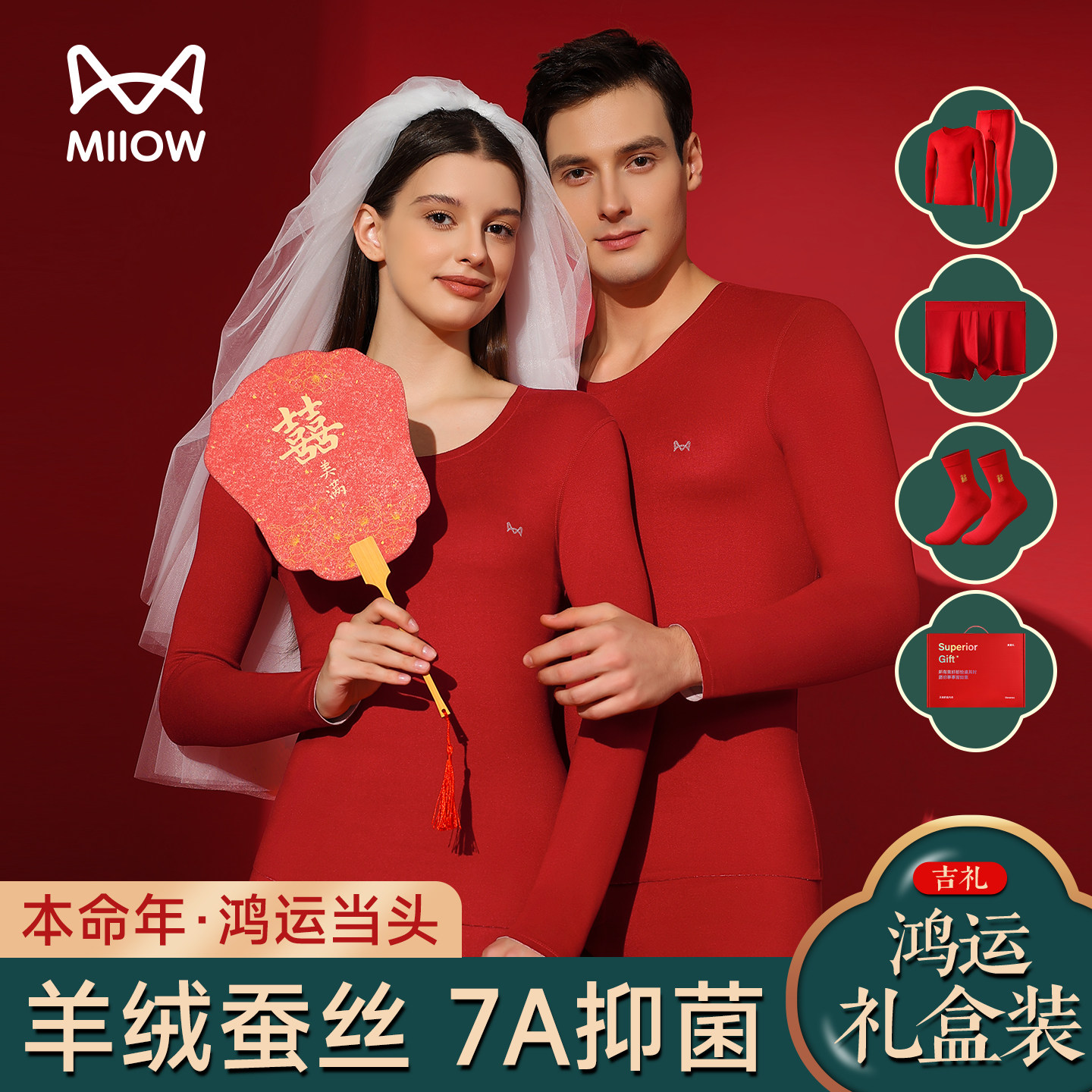 猫人德绒本命年保暖内衣男女士2026马年大红色秋衣裤套装结婚礼物