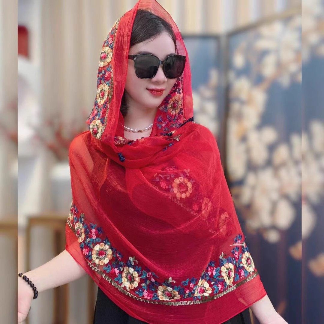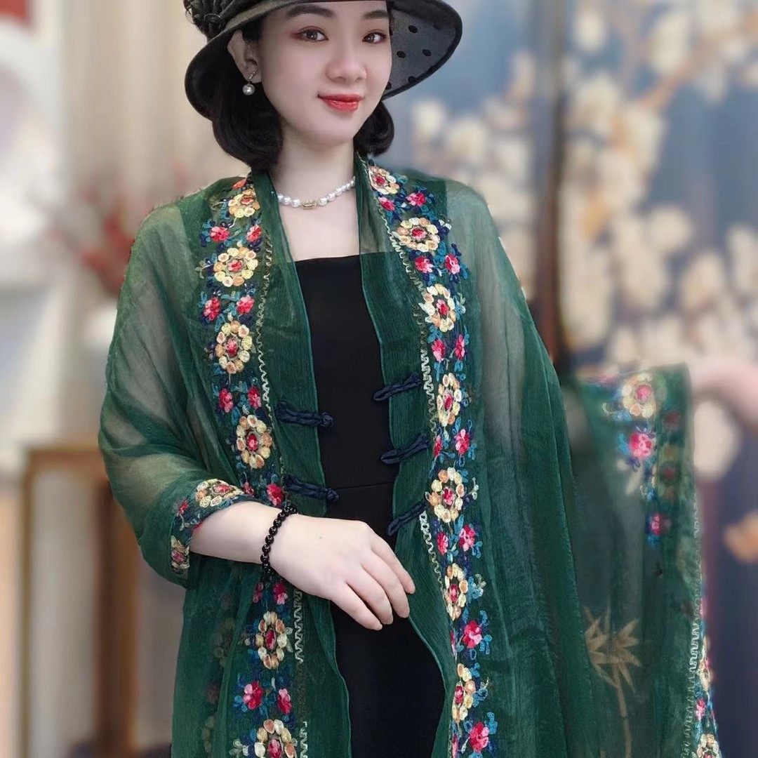 2025春夏新款琉璃纱刺绣披肩女时尚洋气遮阳防晒拍照丝巾外搭披风