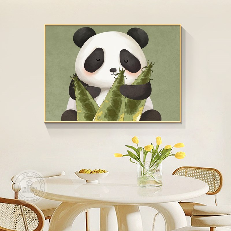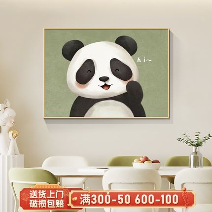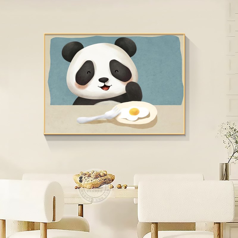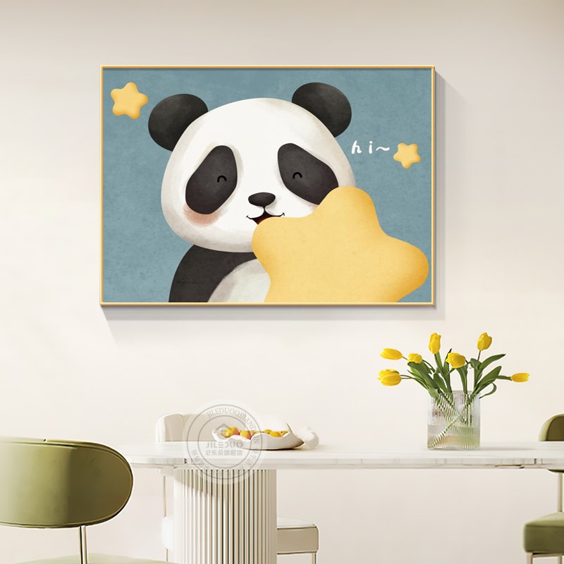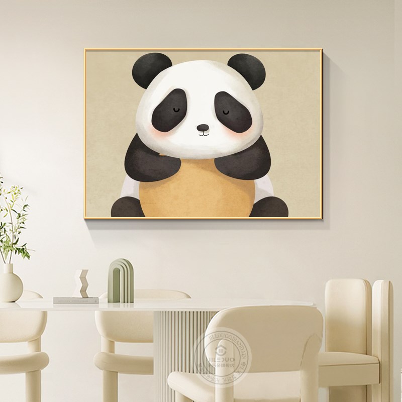 可爱熊猫装饰画现代简约餐桌背景B墙挂画儿童房间卧室床头卡通壁