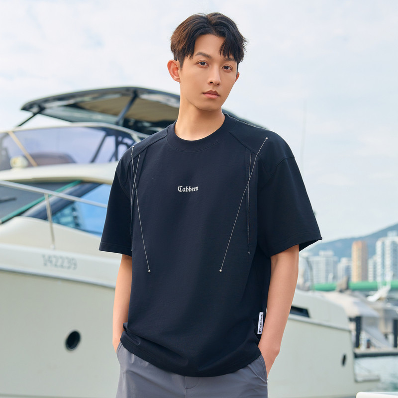 卡宾男装 特色明线设计T恤2025夏季新款烫珠点缀时尚潮流