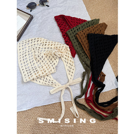 新款韩版ins手工镂空编织纯色三角巾女夏季时尚休闲百搭装饰屁帘