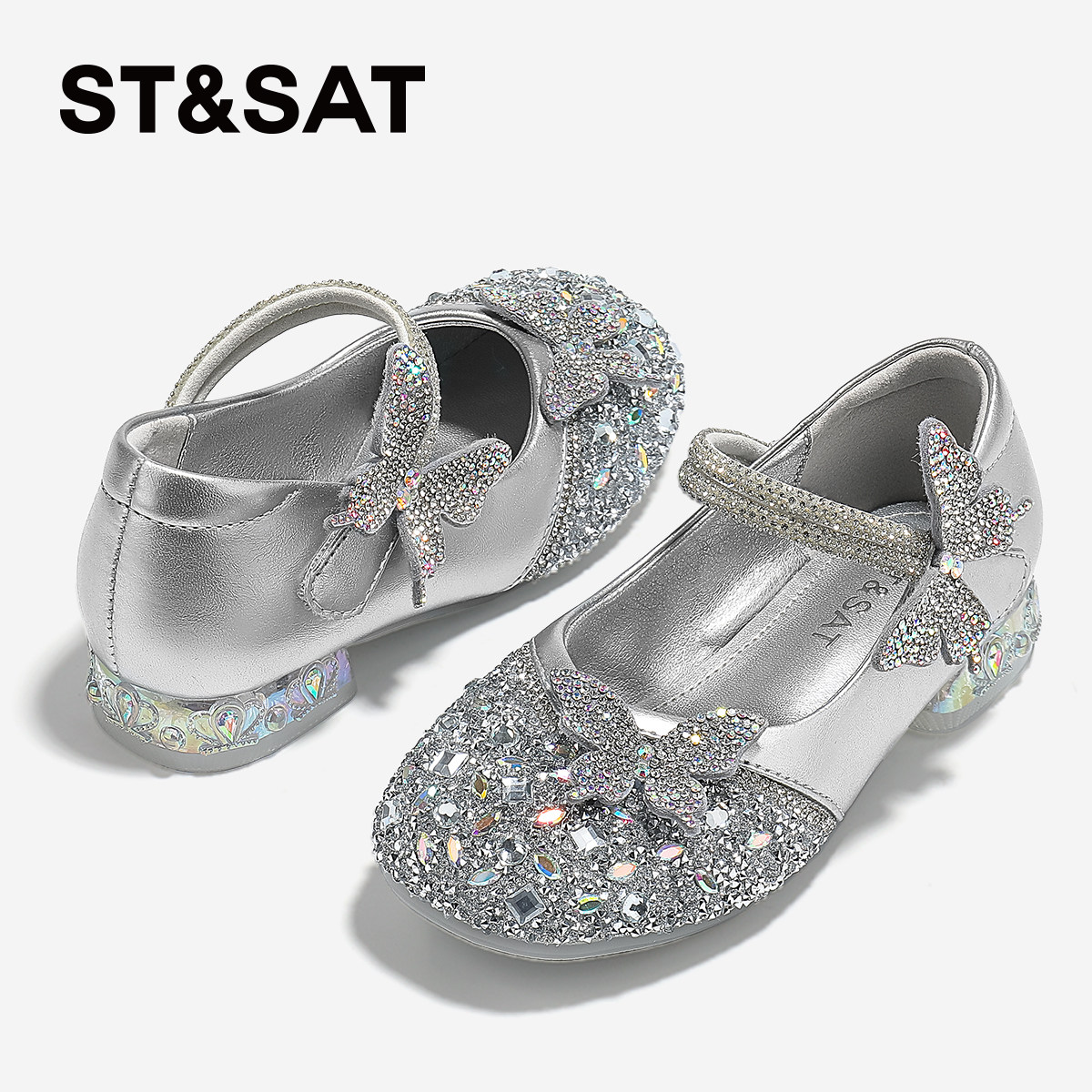 星期六童鞋女童公主鞋2026春季新款女孩软底小皮鞋女生漂亮水晶鞋