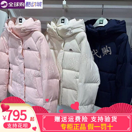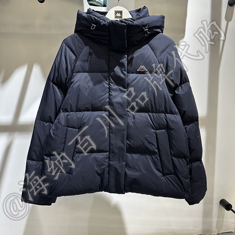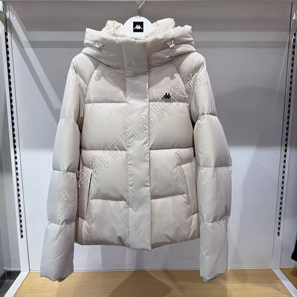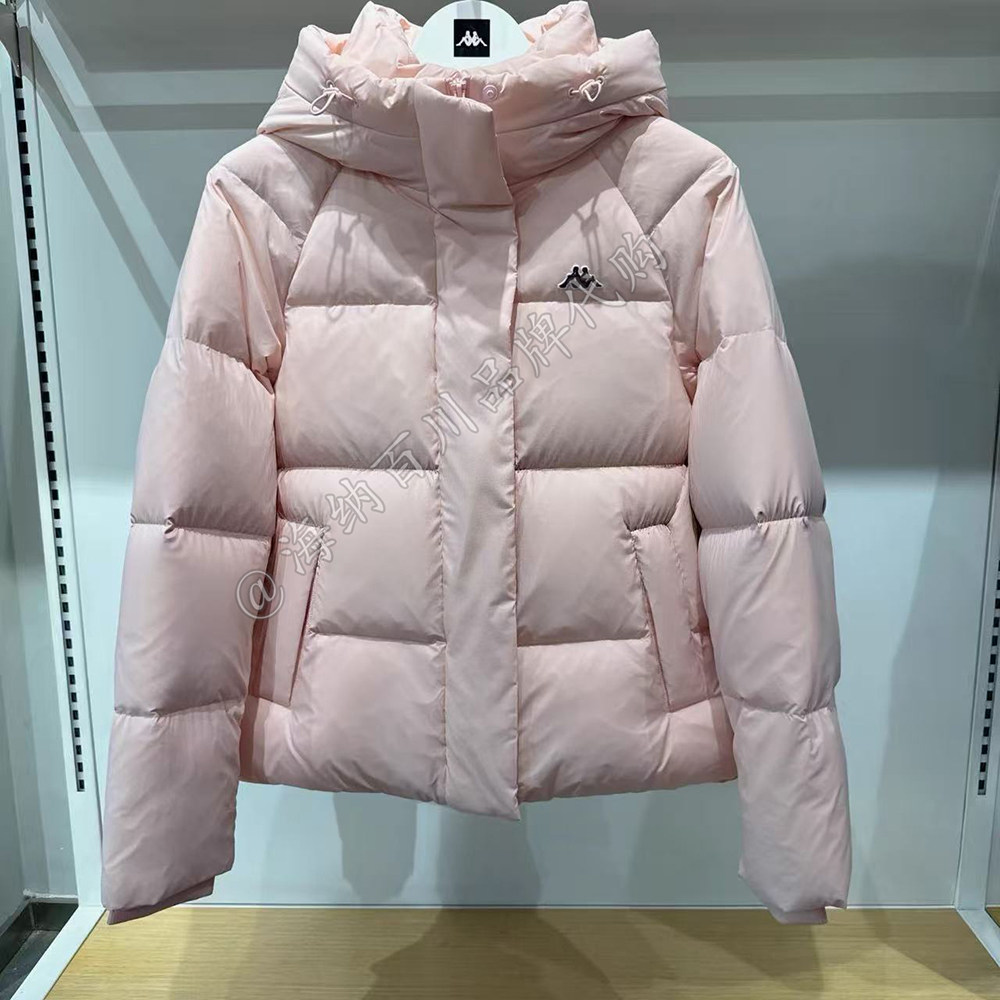 卡帕Kappa女背靠背2025冬运动休闲短款连帽羽绒服面包服K0F82YY21