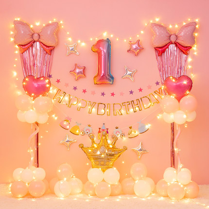宝宝儿童周岁仪式感主题派对生日装饰品场景布置背景墙气球女孩