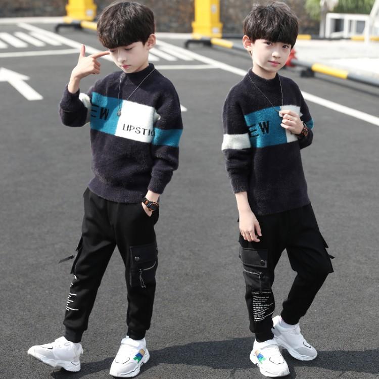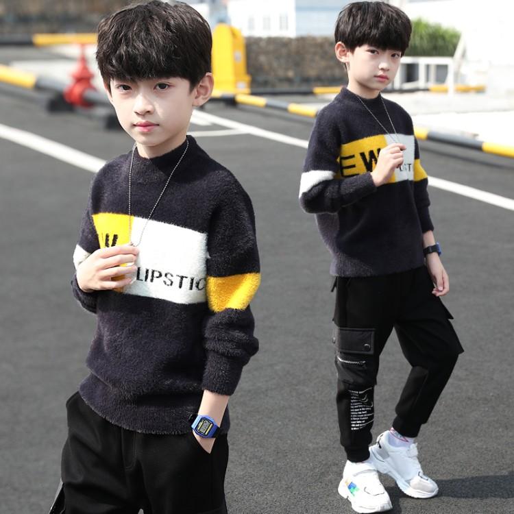 儿童装男童毛衣2025冬装新款秋冬季中大童男孩加厚水貂绒打底衫潮