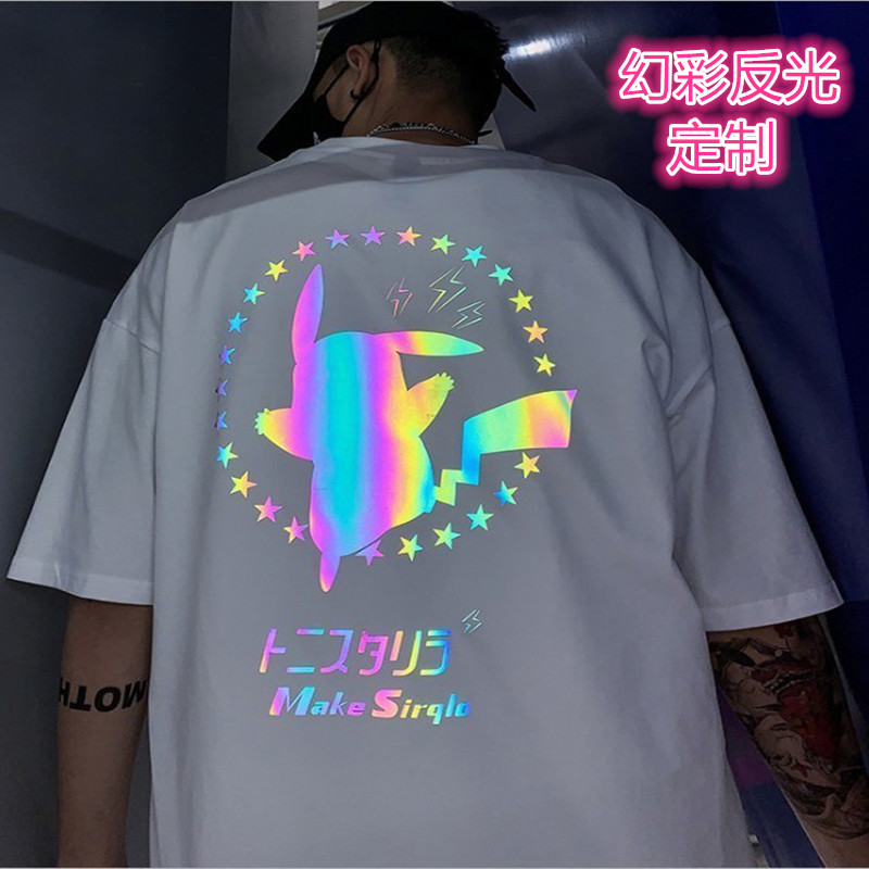 夜光T恤定制LOGO 镭射反光潮牌落肩袖宽松全棉团建广告文化衫印字