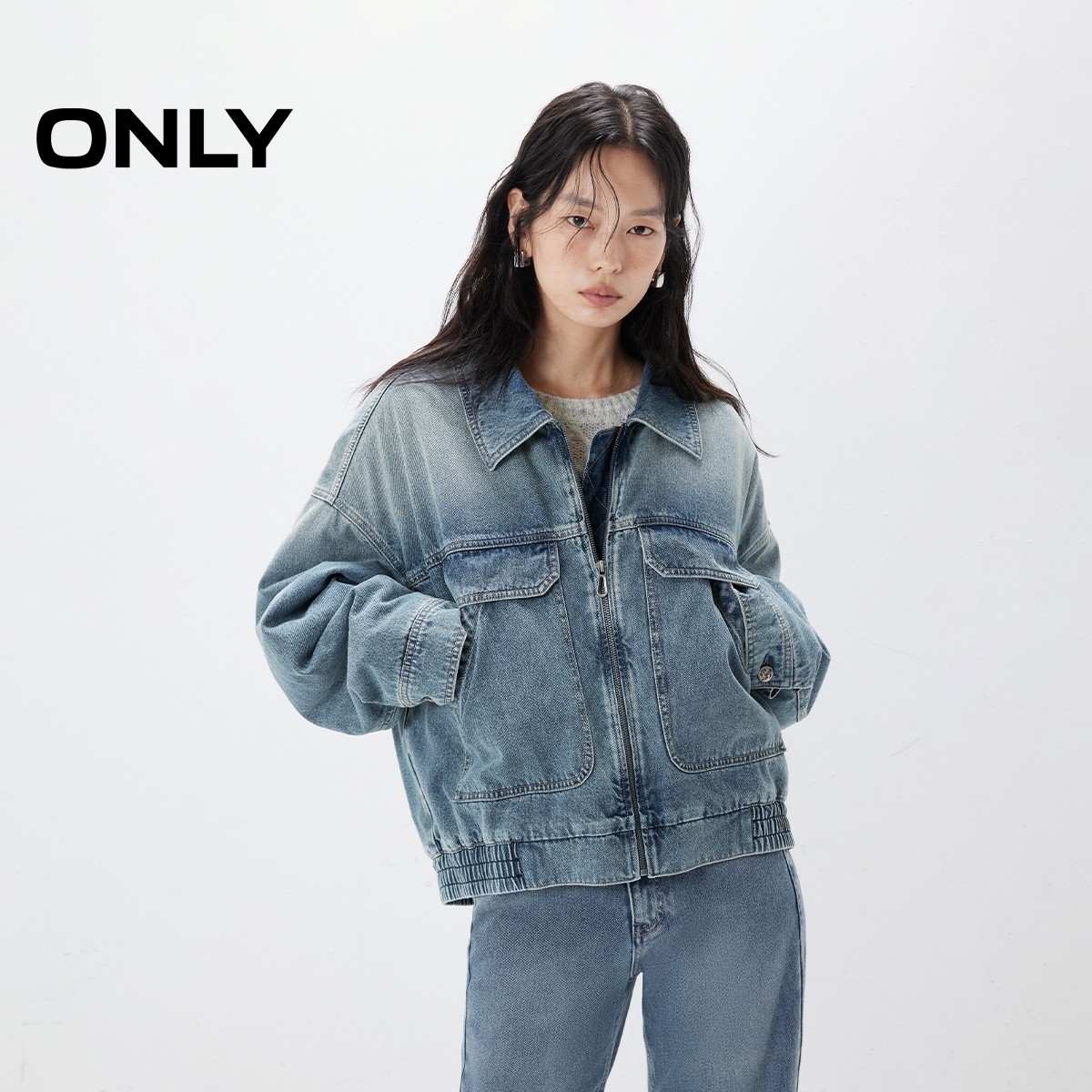 ONLY2025冬季新款可拆卸保暖毛绒领宽松落肩显瘦夹棉牛仔外套女