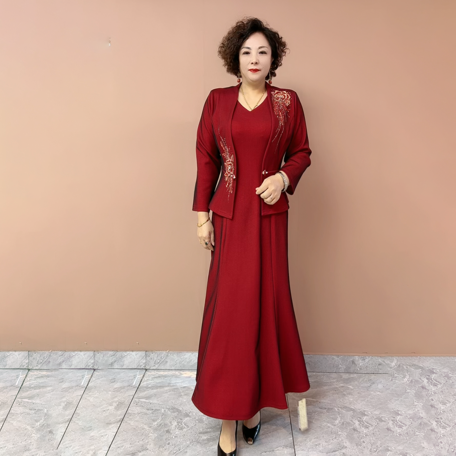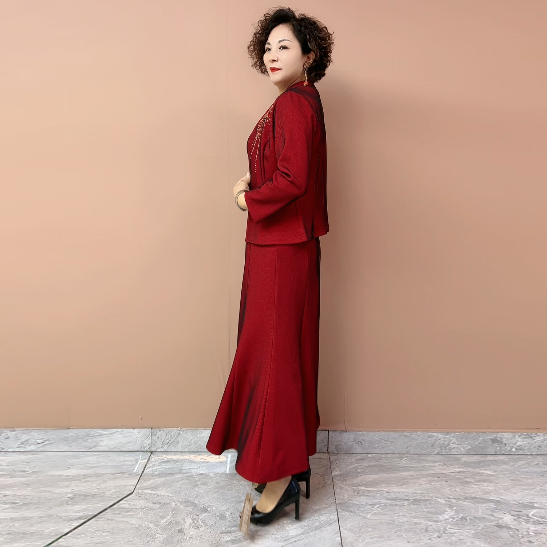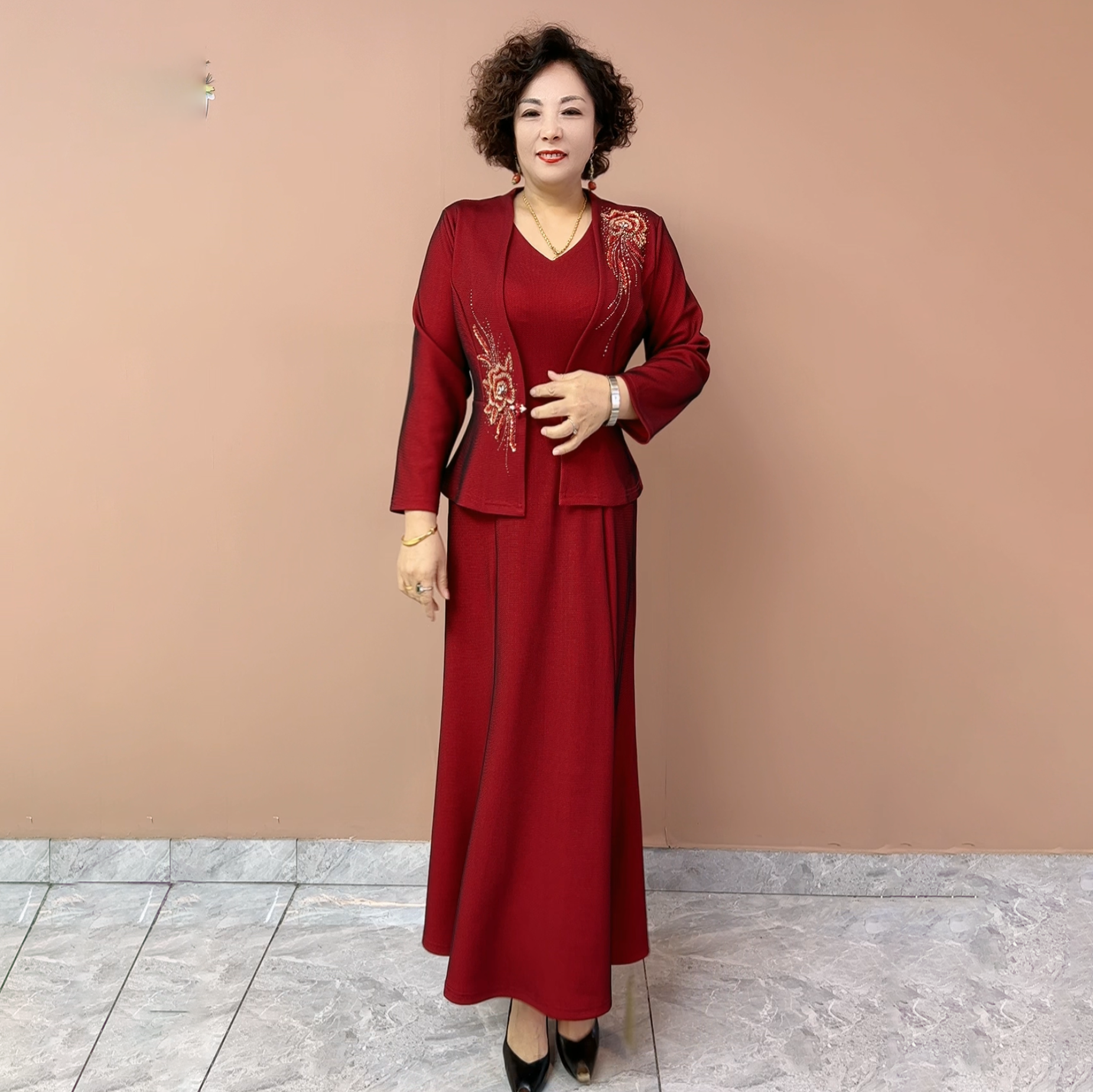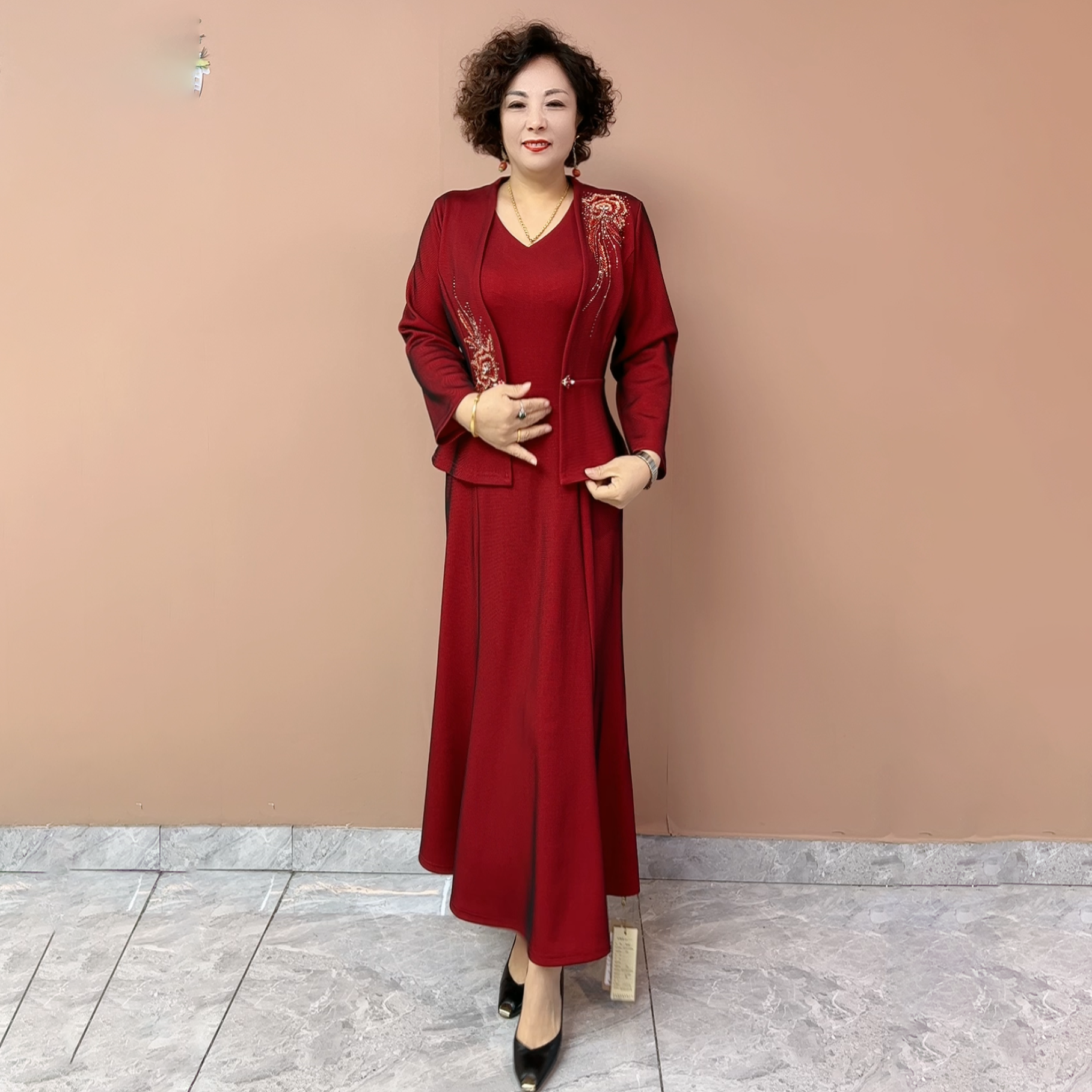 妈妈婚宴装旗袍高贵年轻喜婆婆结婚礼服加长款连衣裙鱼尾两件套装