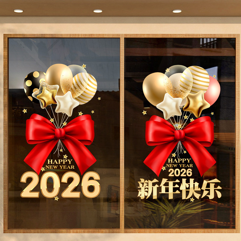 2026年马年新年装饰窗贴玻璃贴纸门贴静电贴春节氛围布置橱窗贴画