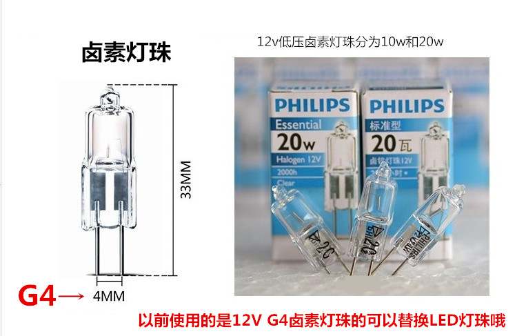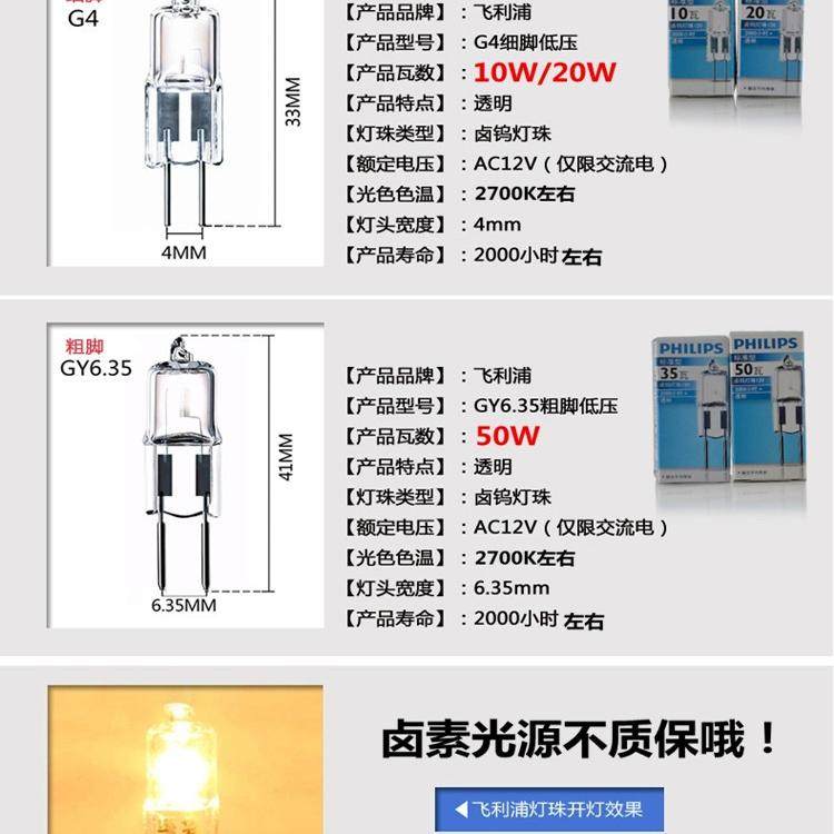 飞利浦卤素灯珠 G4灯珠12v低压 10W20W水晶灯珠 灯泡G4插脚插针