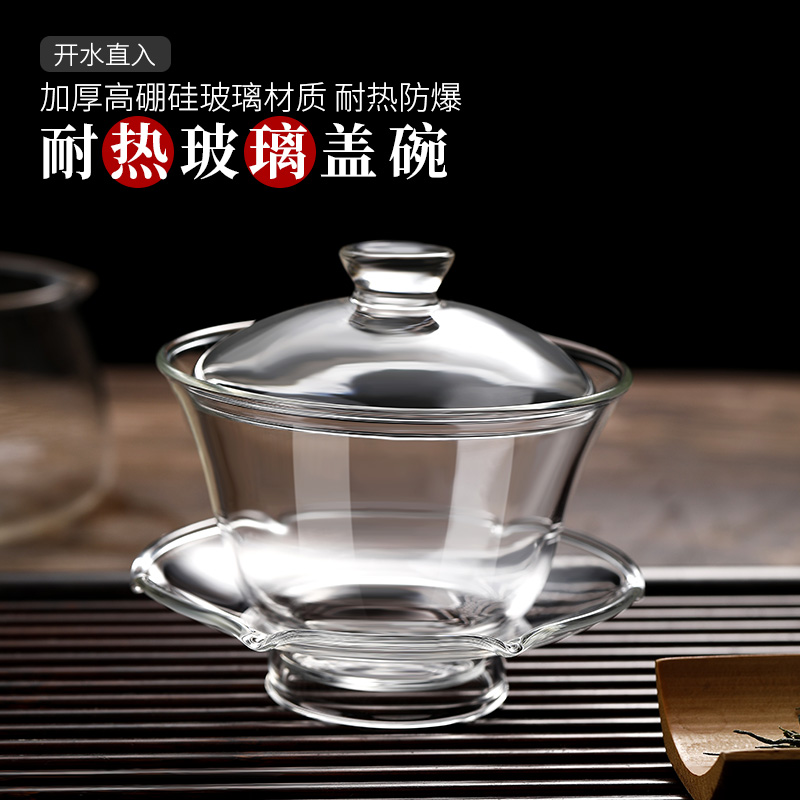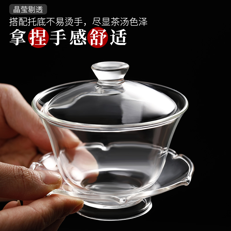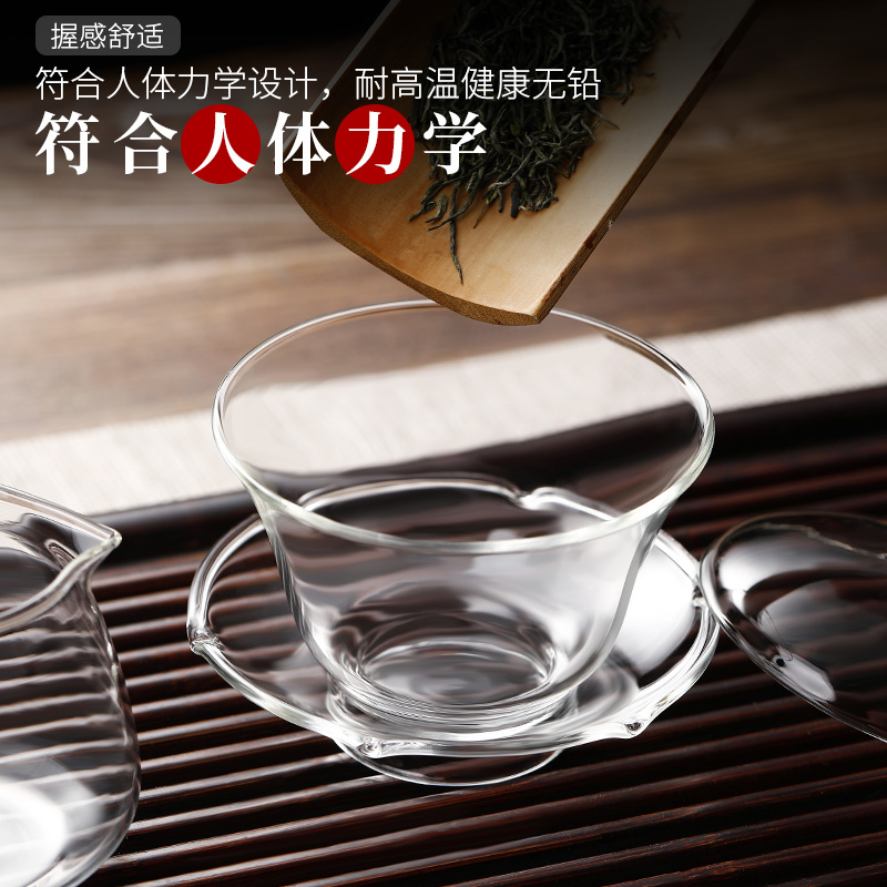 玻璃盖碗茶杯功夫茶具套装加厚透明泡茶壶手工大号敬茶三才碗家用