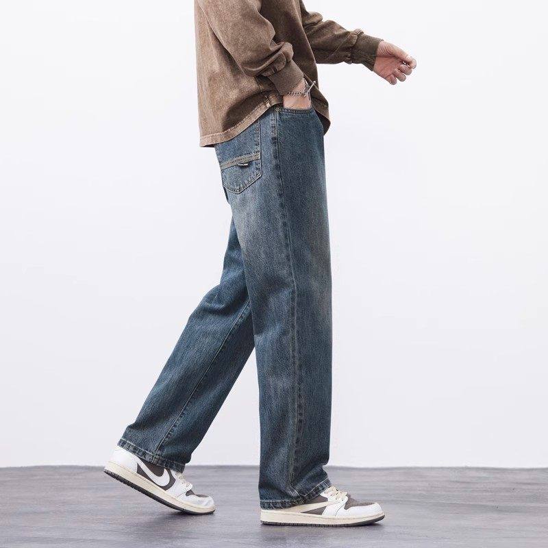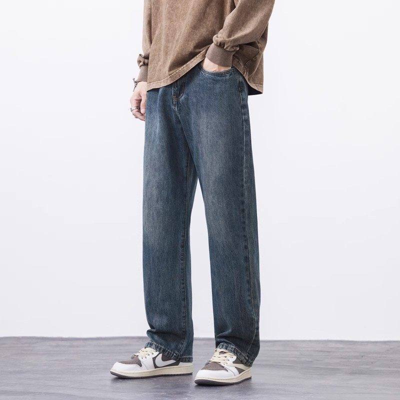 Yishion以纯官方时尚正品秋冬款加绒加厚阔腿牛仔裤男新款直筒宽