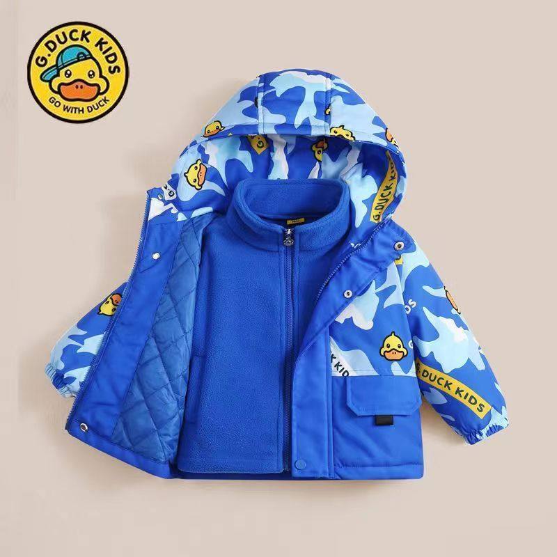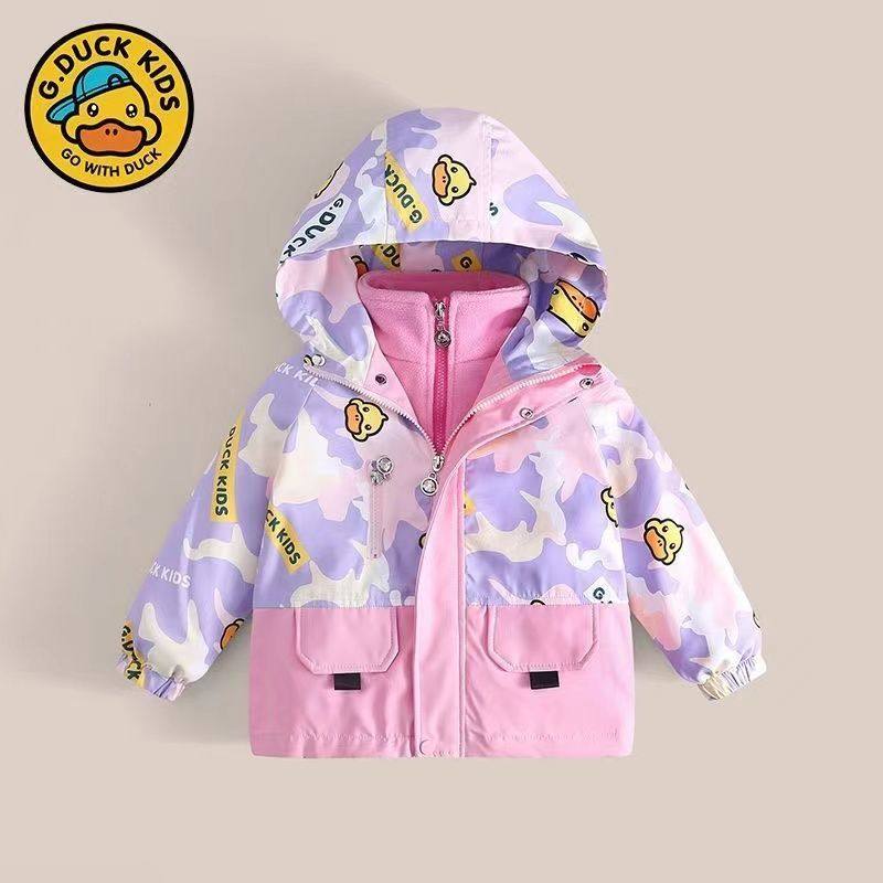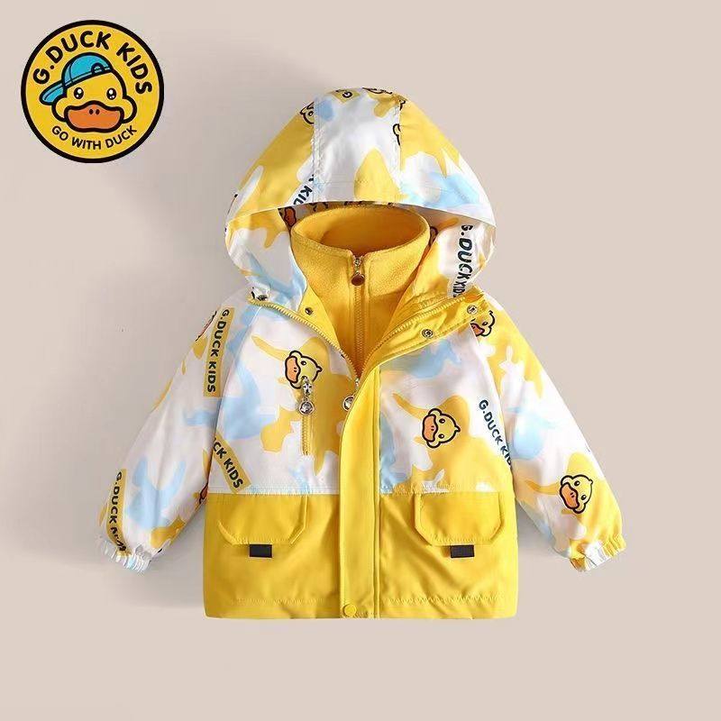 小黄鸭童装三合一冲锋衣男童外套春秋季2025新款男女童防风风衣潮