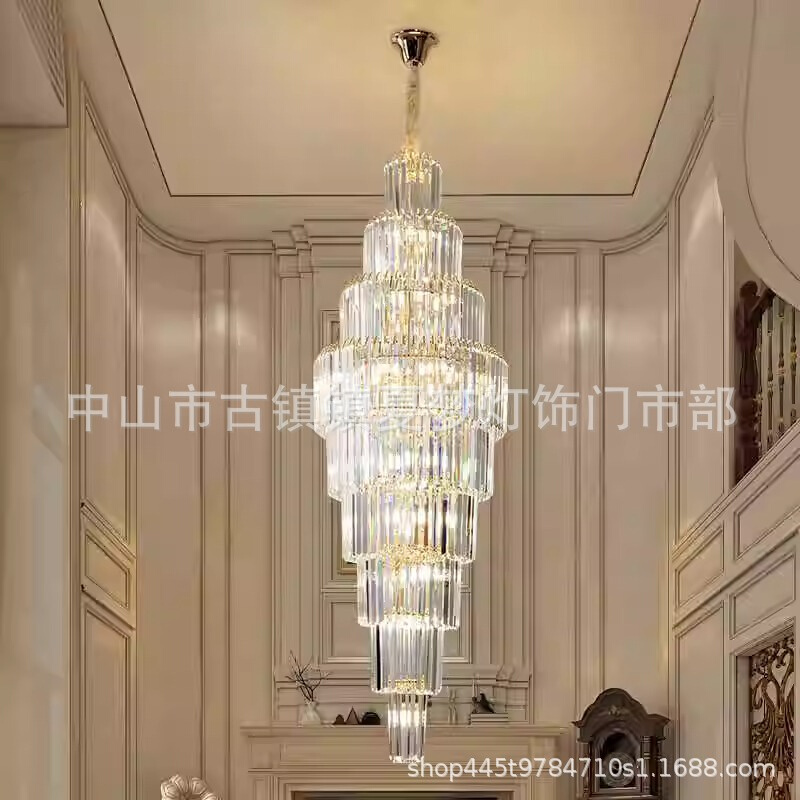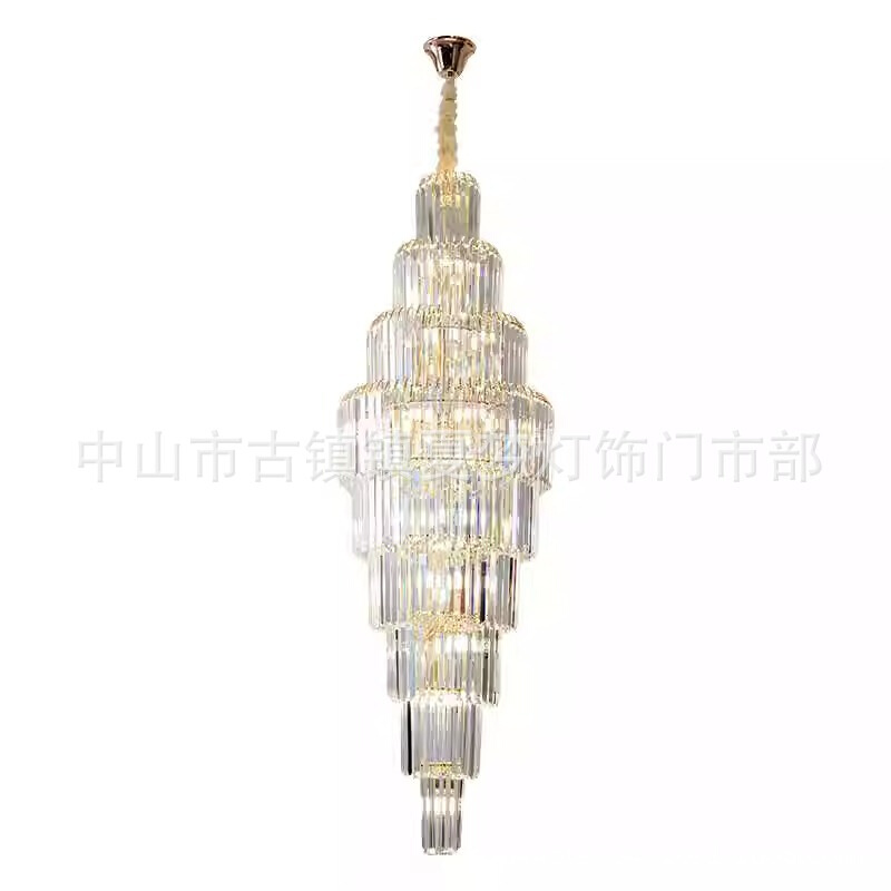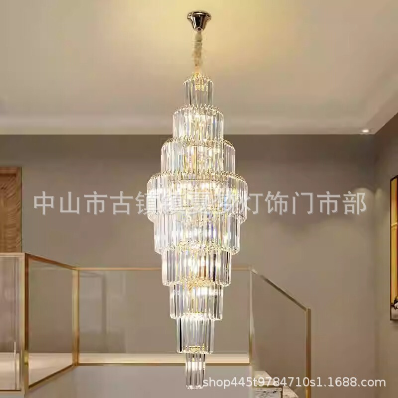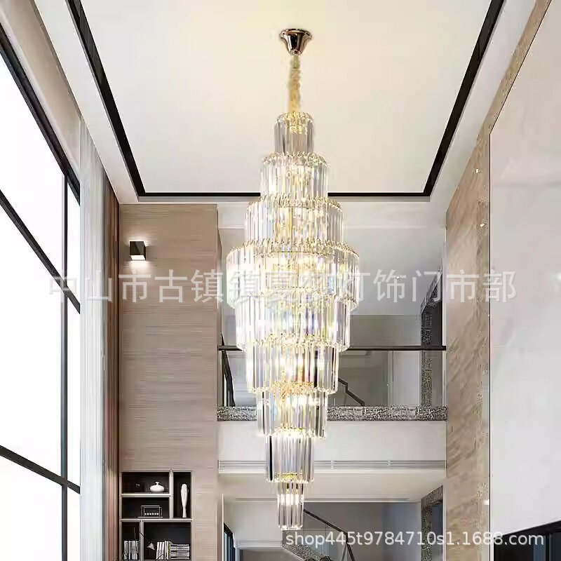 复式楼大吊灯水晶大厅灯旋转楼梯吊灯后现代家用别墅客厅中空灯具