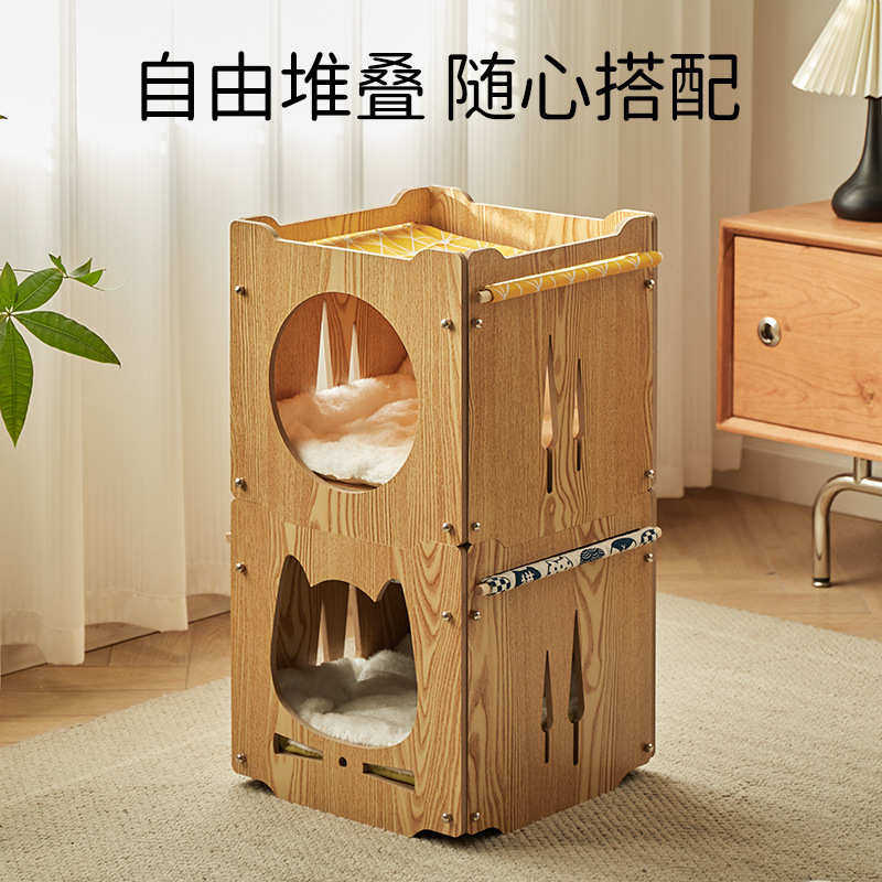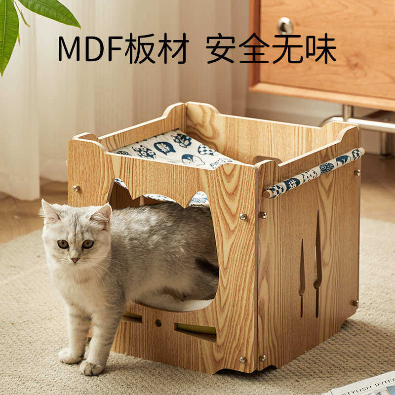 猫窝四季通用冬季保暖网红半封闭式猫屋猫咪用品木制产箱积木别墅
