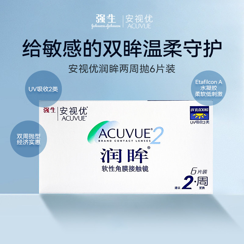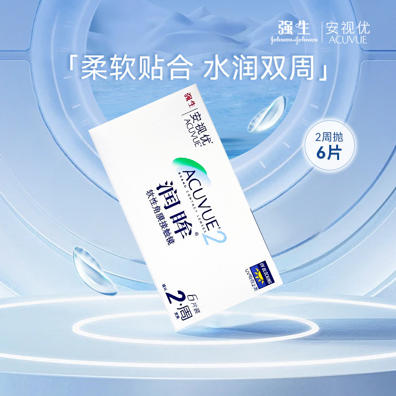 强生润眸双周抛6片*2盒透明镜片隐形眼镜半月抛安视优旗舰正品sl