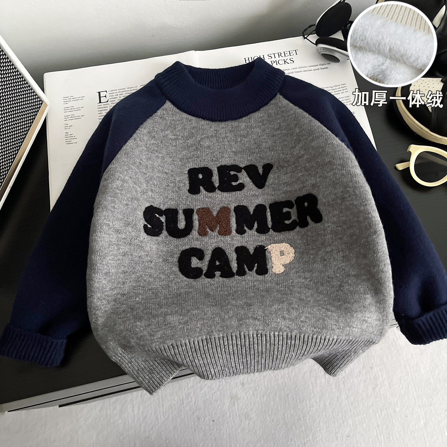 儿童毛衣一体绒男童内搭针织打底衫加绒加厚小男孩冬季保暖羊绒衫