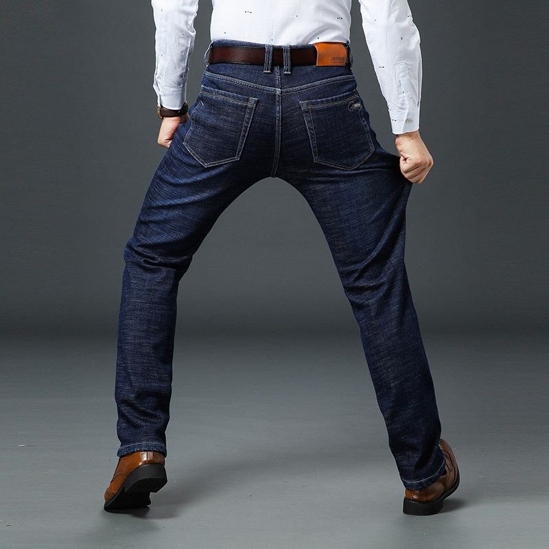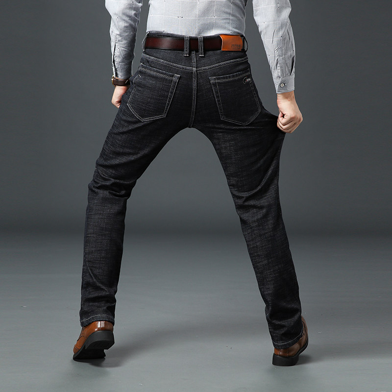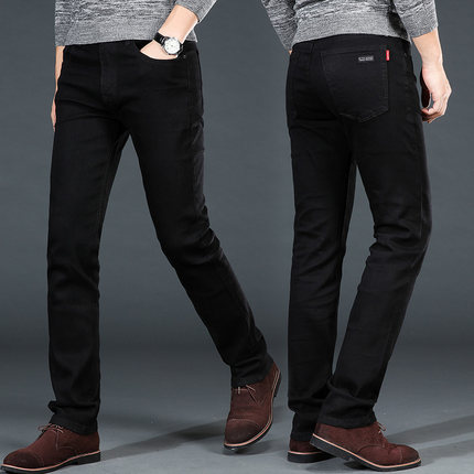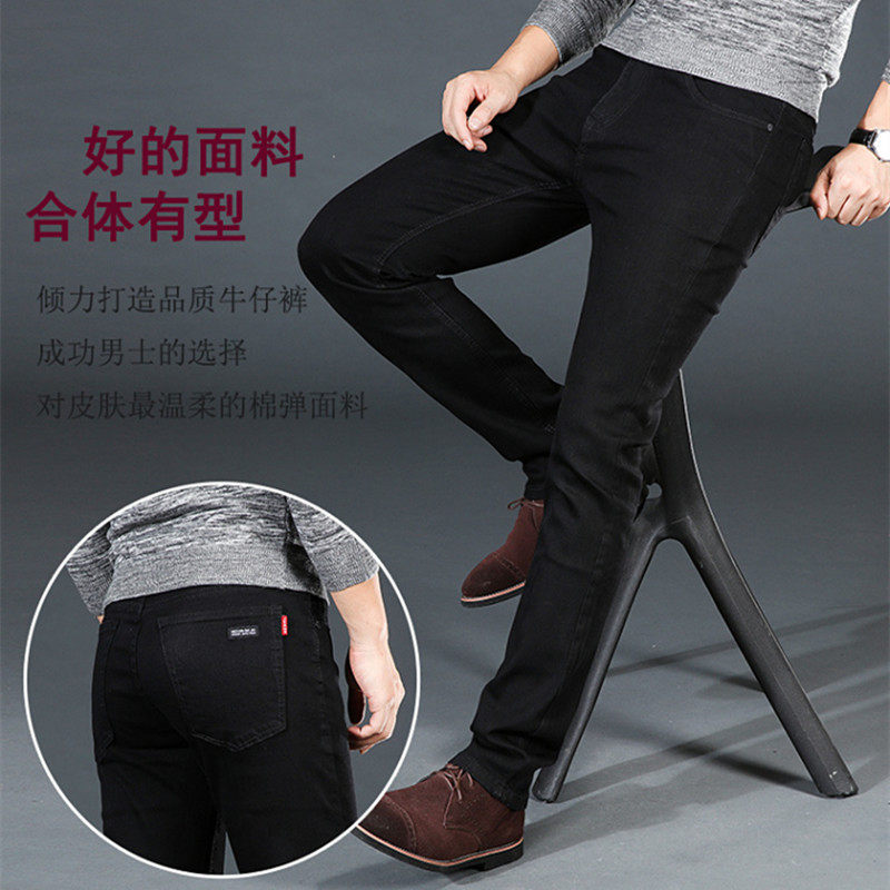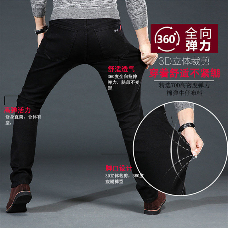 春夏季新款高弹力男士牛仔裤黑色高腰修身直筒加肥加大码休闲