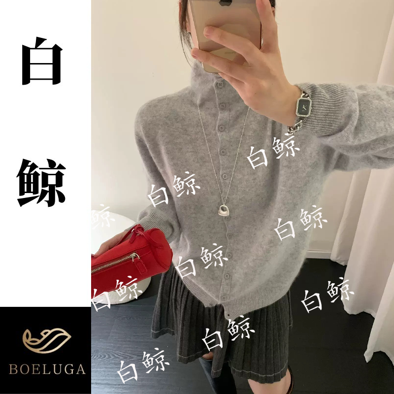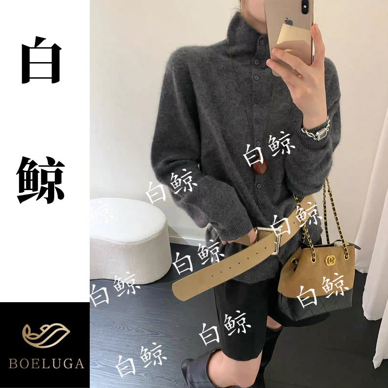 韩版拉毛翻领羊毛开衫女百搭针织衫毛衣外套极简风2896拉绒